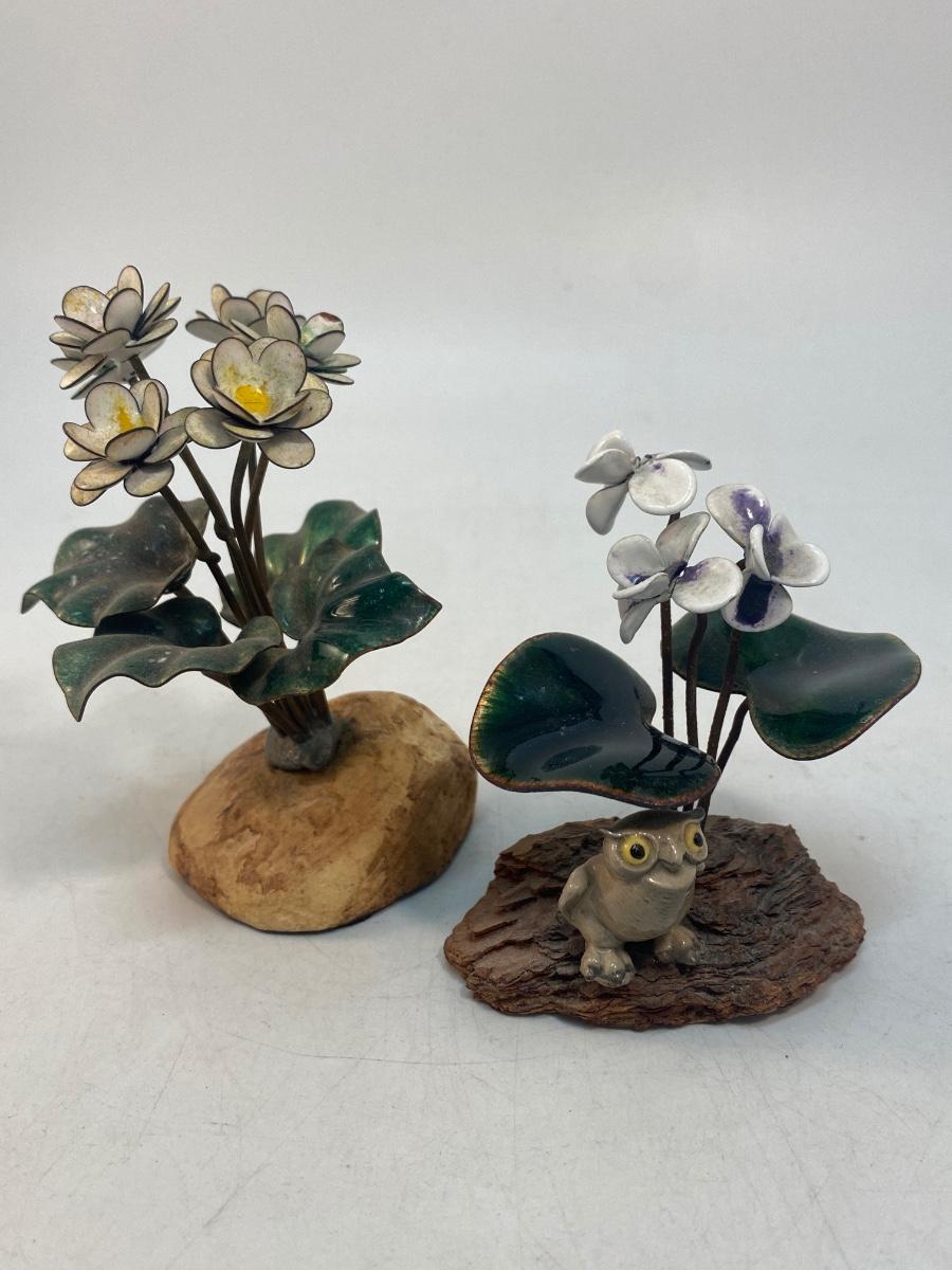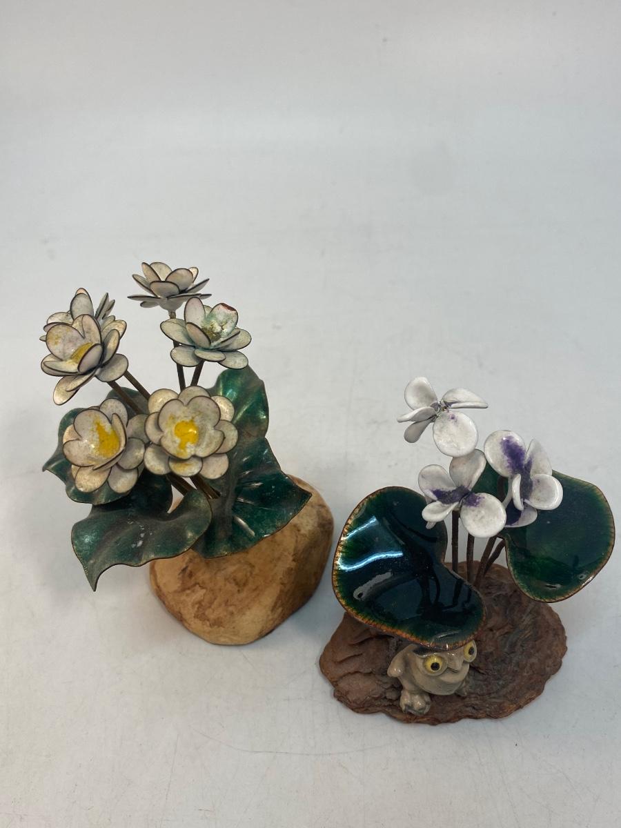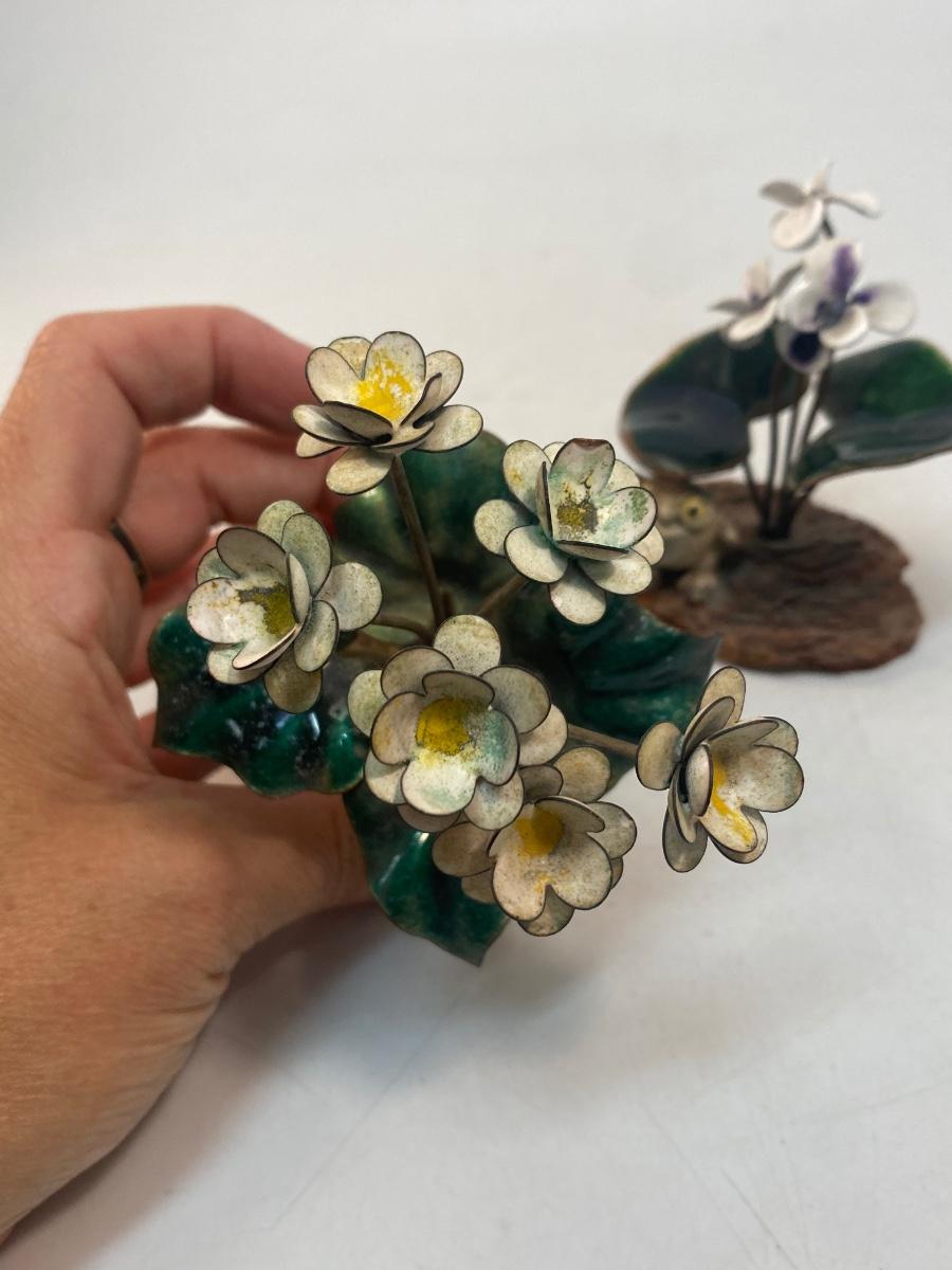 Set of Two Mid Century Retro Vintage Enameled Metal Flowers Bovano of Cheshire