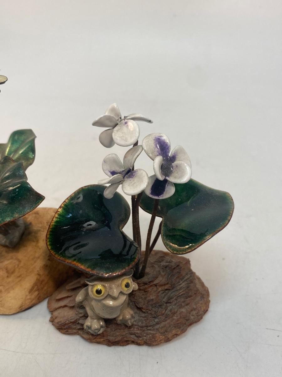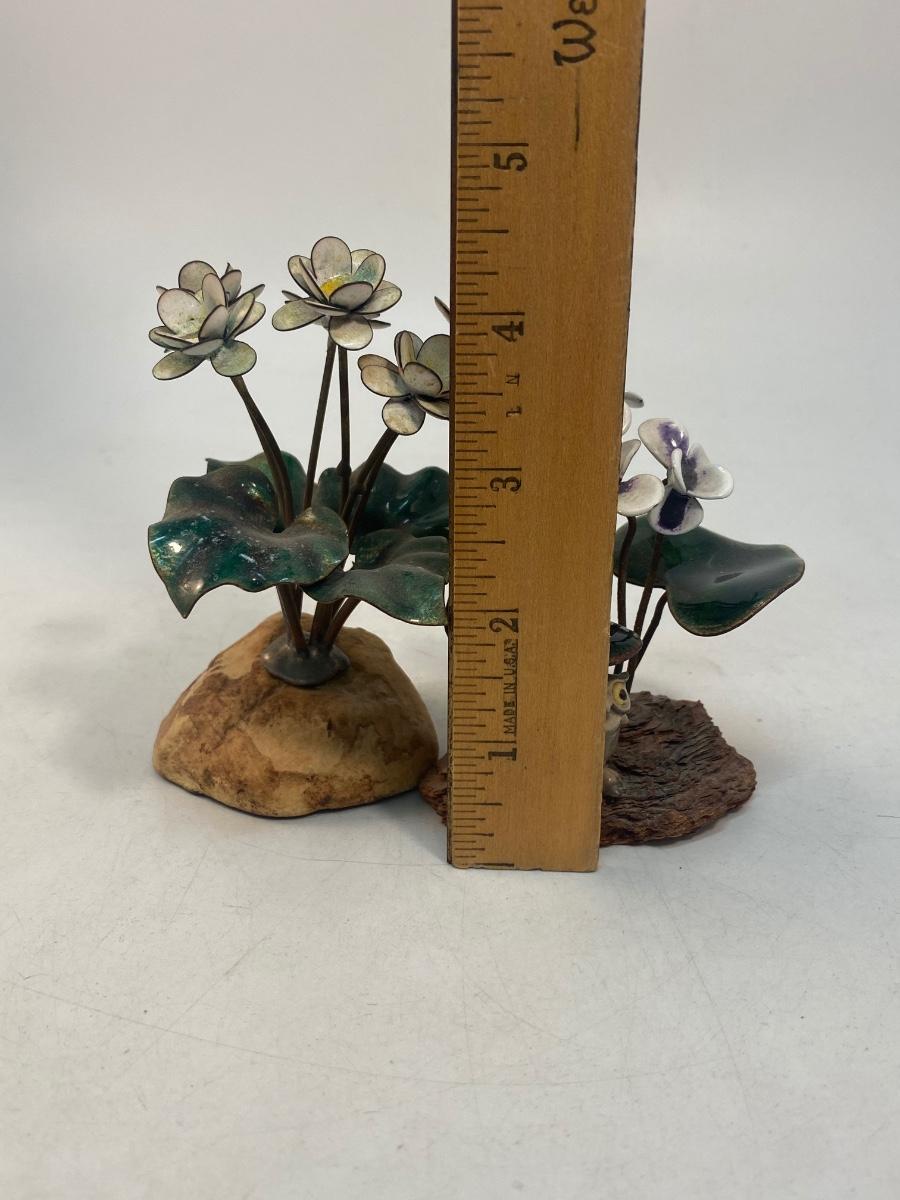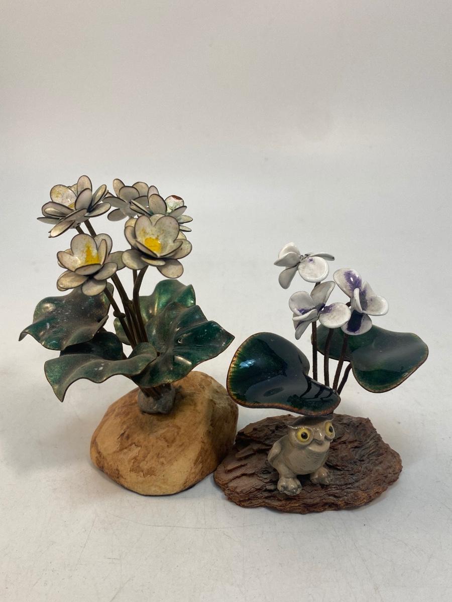 Set of Two Mid Century Retro Vintage Enameled Metal Flowers Bovano of Cheshire