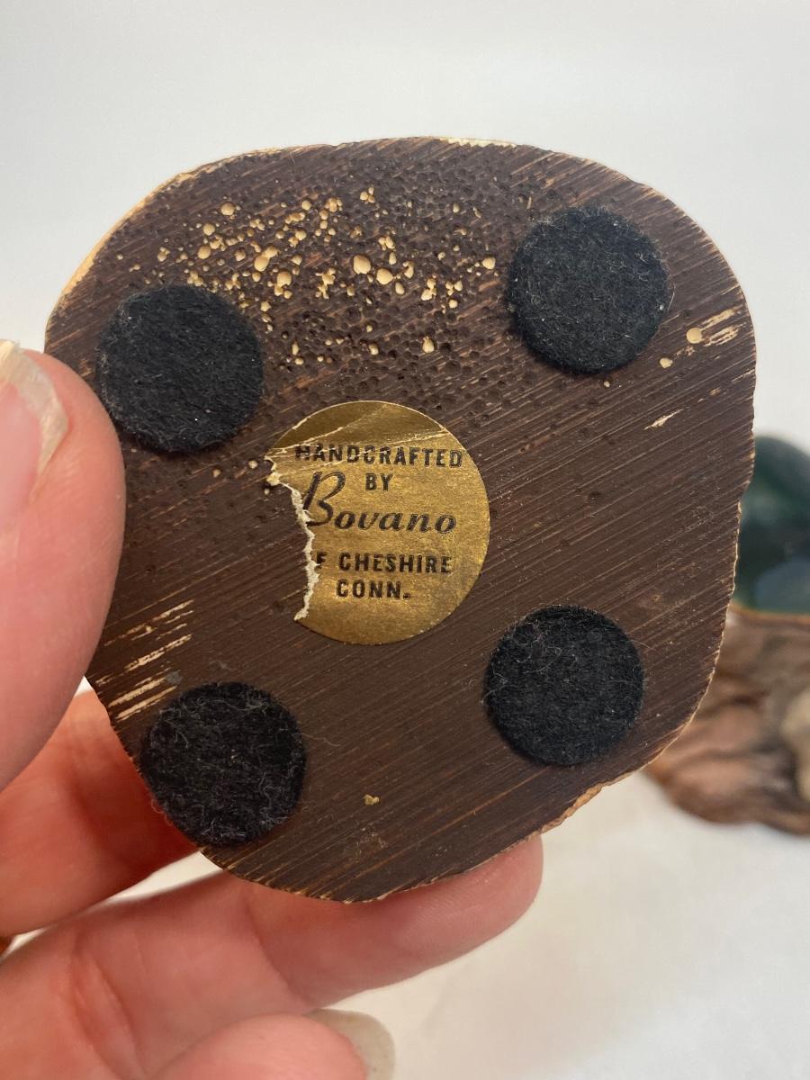 Set of Two Mid Century Retro Vintage Enameled Metal Flowers. One still has the partial Bovano of Cheshire sticker still attached. Both in good condition.