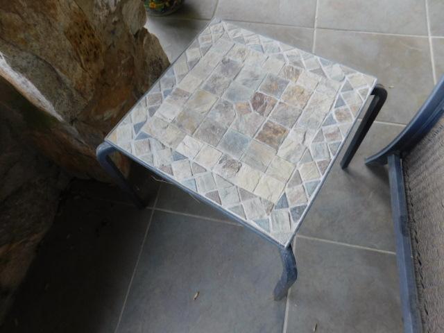 Set of Two Mosaic Top Patio Side Tables 16"x16" in very good condition. May need some cleaning