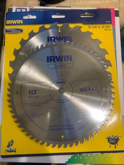 Set of Two New in Pack Irwin 10" Table Saw Blades 60 and 24 Teeth