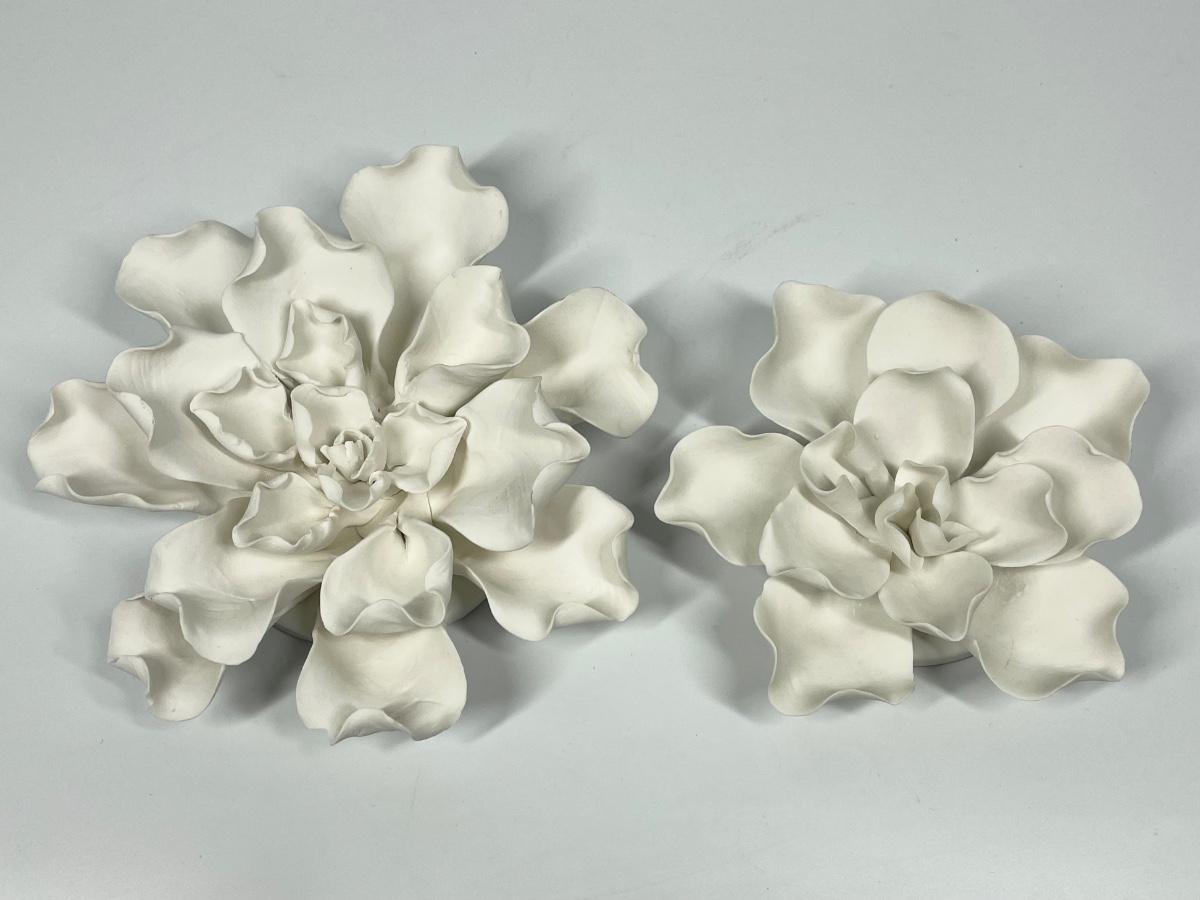 Both items are in great condition and don’t have any noticeable damages. On the back of the flower decorations, there is a hole so that they can be hung on a wall.