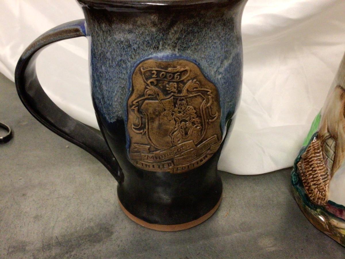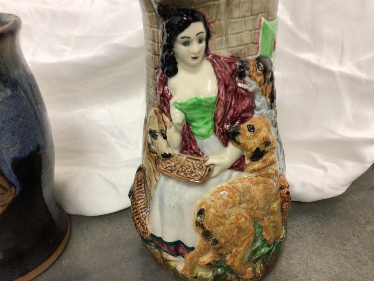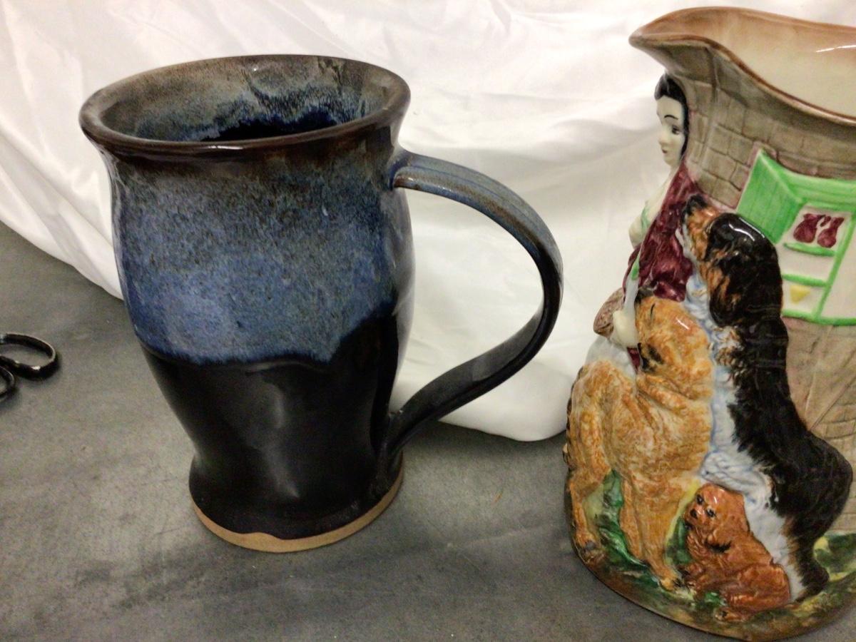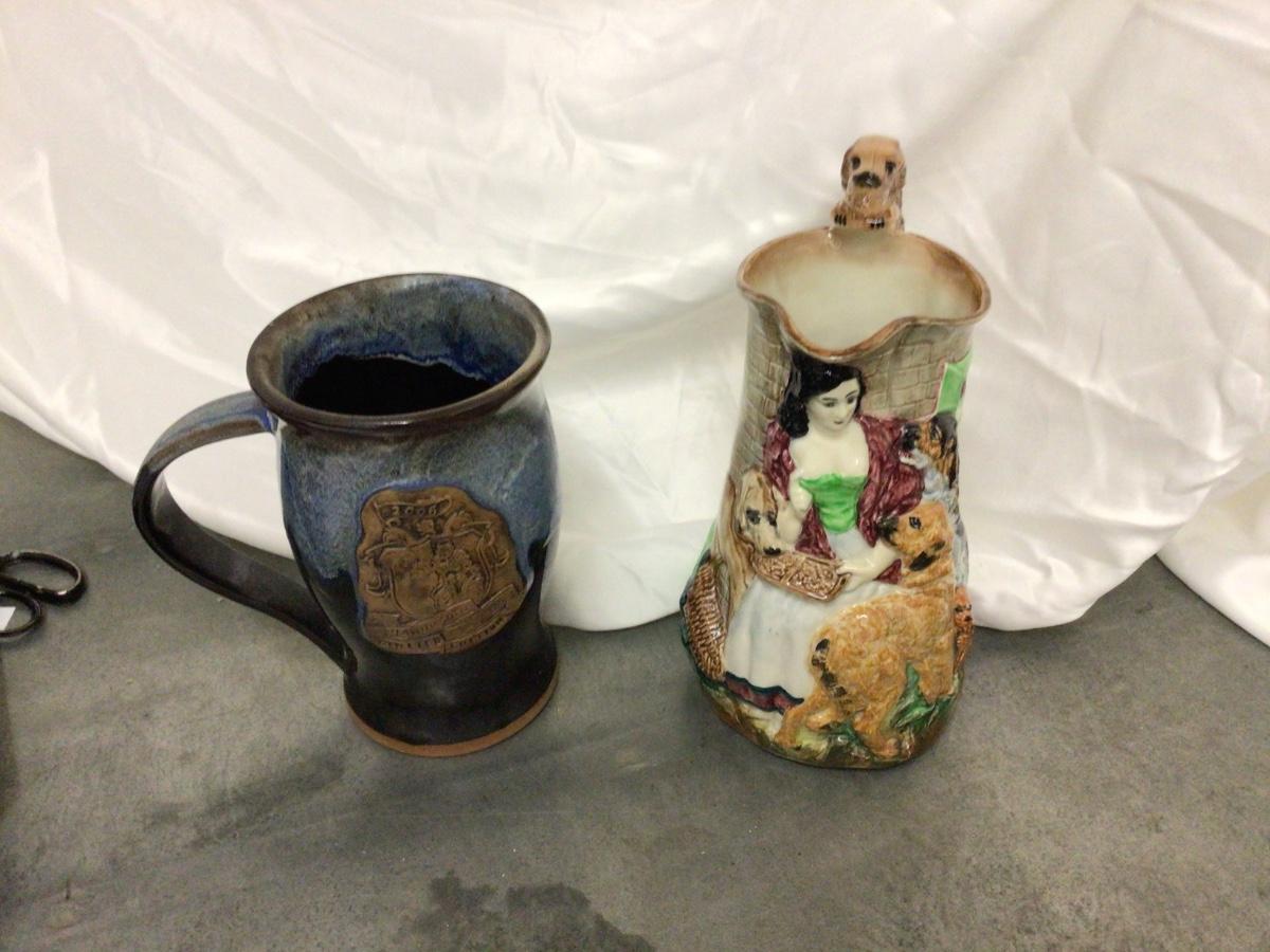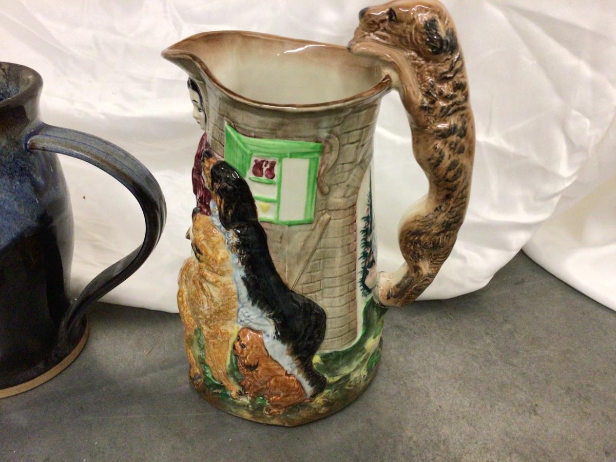 One is stoneware Minnesota Renasaunts Pitcher and Reproduction Dog Pitcher