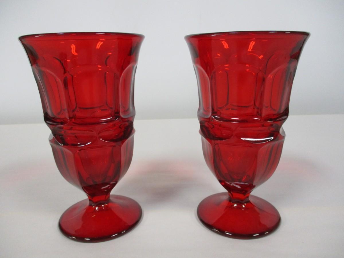Set Of Two Ruby Red Georgian Old Williamsburg Glasses