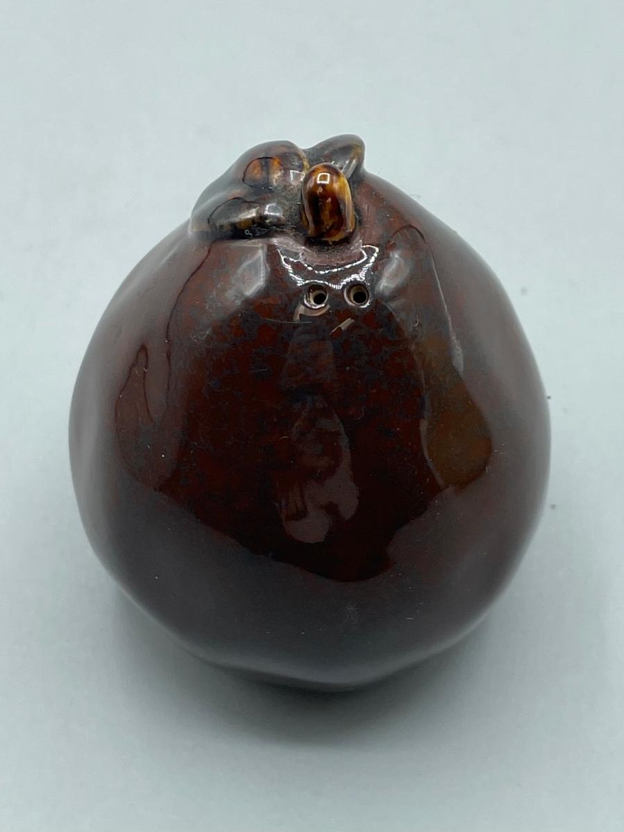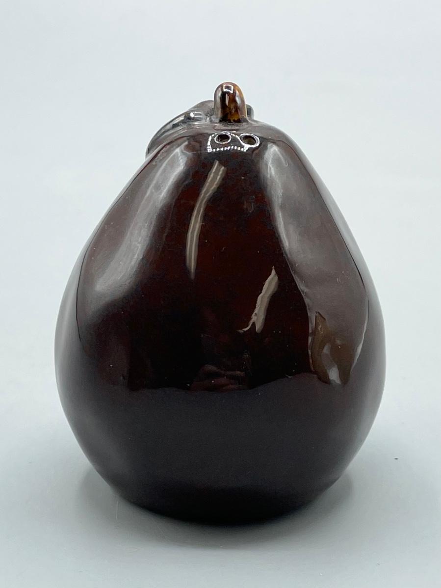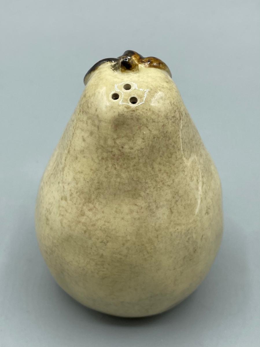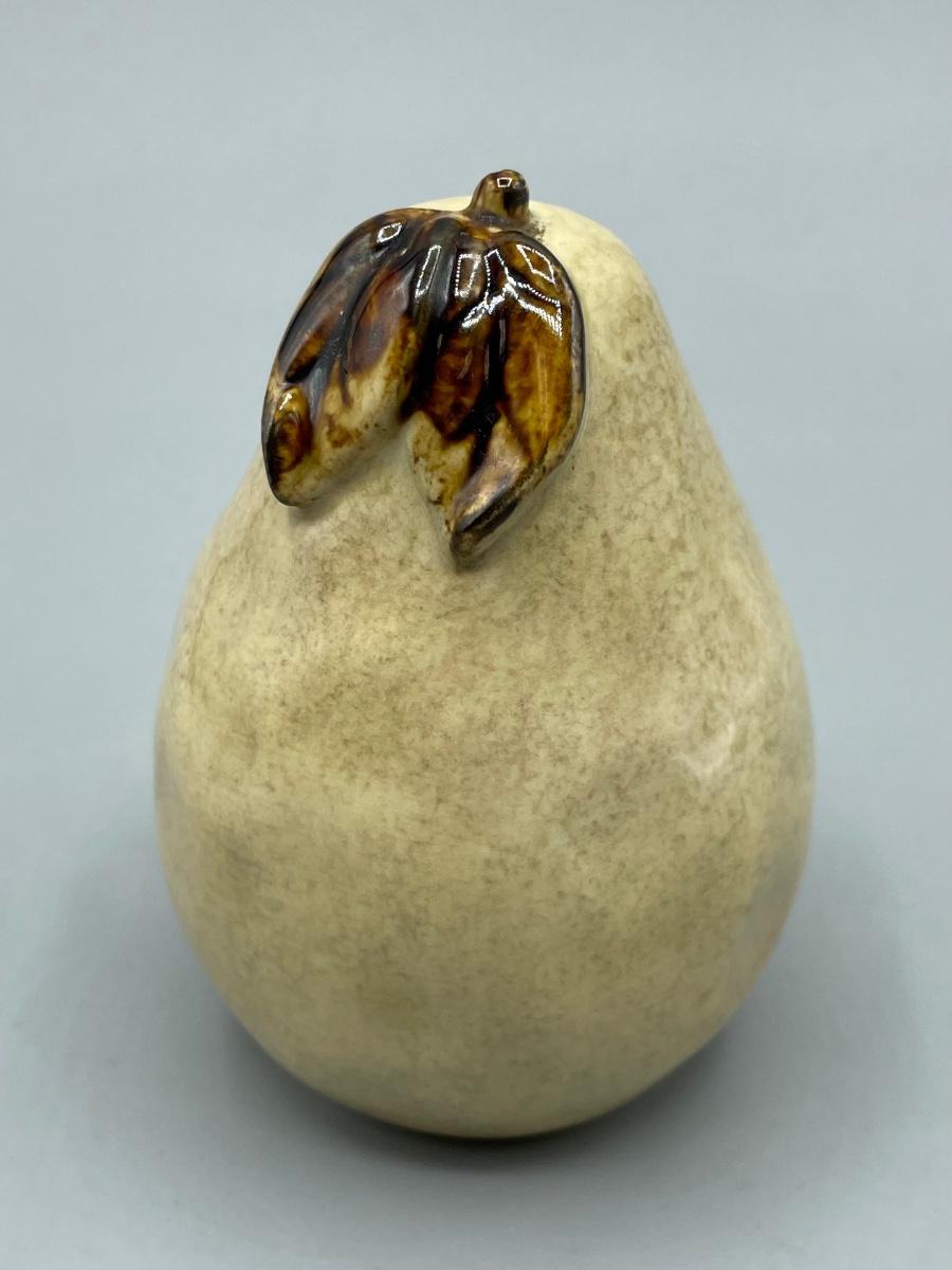 Both pears are in great condition. They both come with a stopper at the bottom so that the stuff inside don’t fall out. The fan pear is a bit taller than the brown one. The bottom of both is a little bit scratched up.