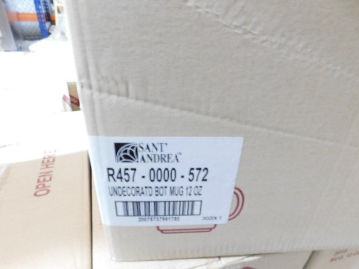 Set of Four Sant Andrea White Coffee Mugs with Saucers New in Box C There are 3 dozen ct each box mugs, and 3 dozen ct saucers each box. Buyer is getting 12 Dozen mugs and 36 dozen saucers total.