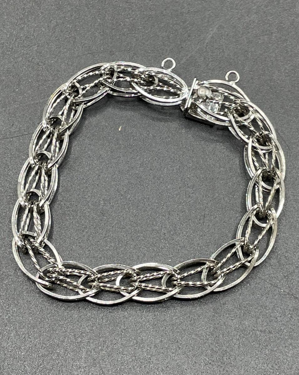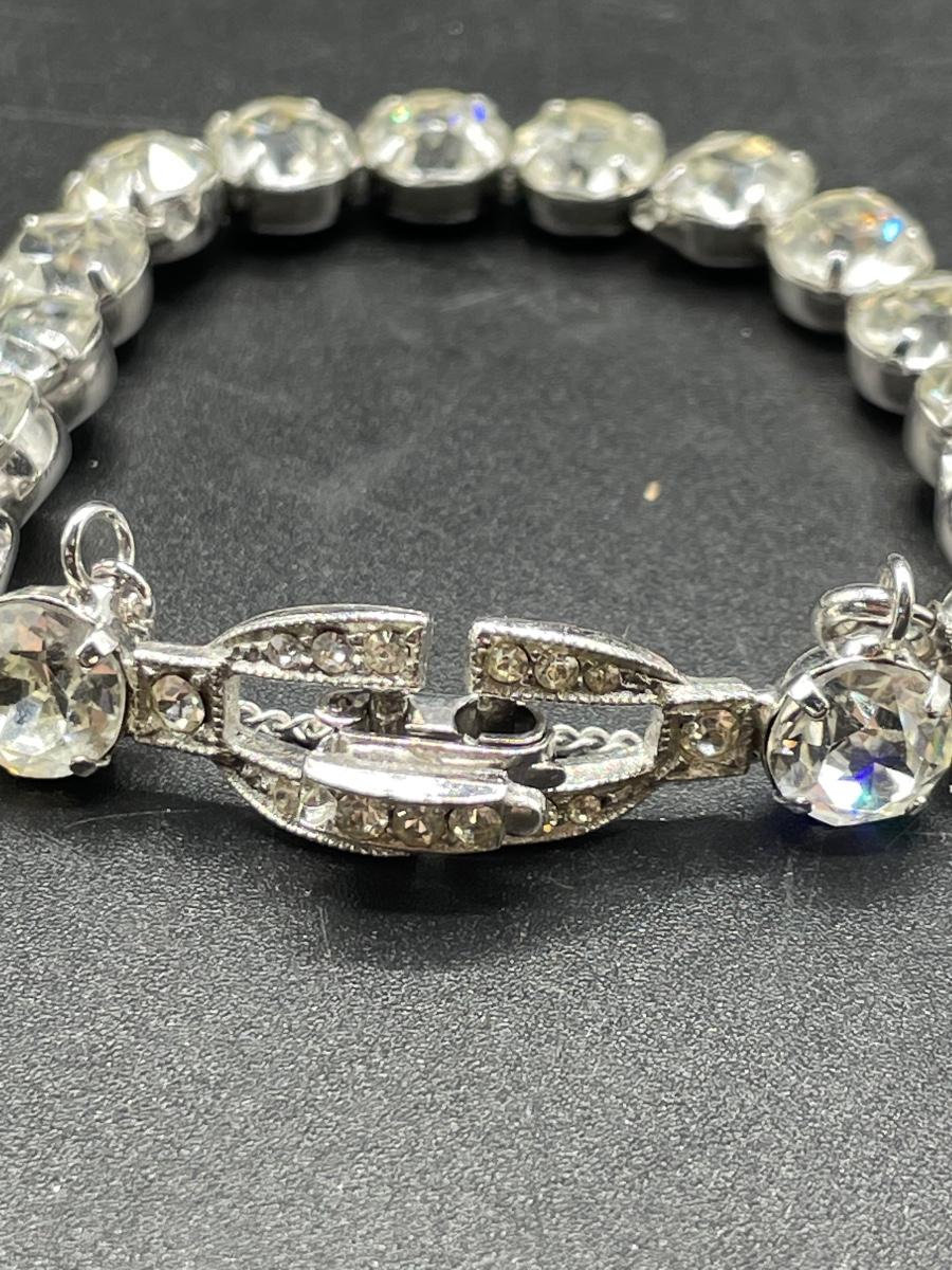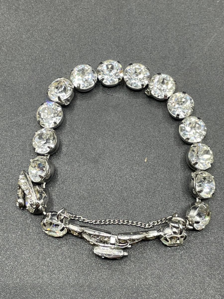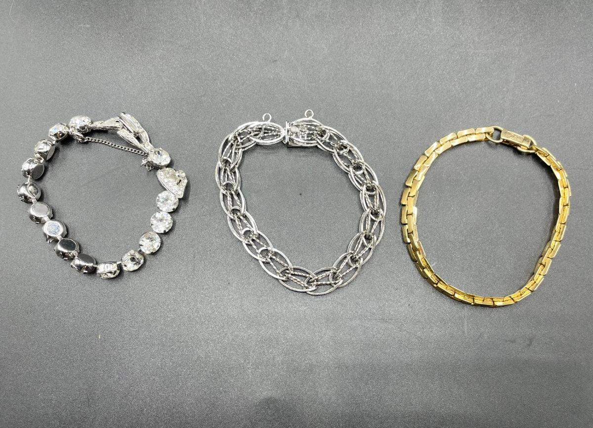 All bracelets are in great condition. The rhinestone bracelet is signed Weiss, The silver double link is marked sterling, and the last one is gold tone metal.