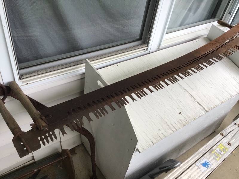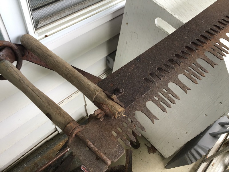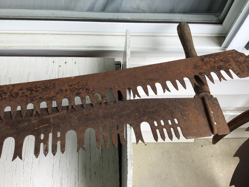 VINTAGE FARM HAND SAW. VERY COOL TO DECORATE WITH AROUND THE HOME OR SHED. 66 INCHES LONG.ONE HANDLE IS MISSING..