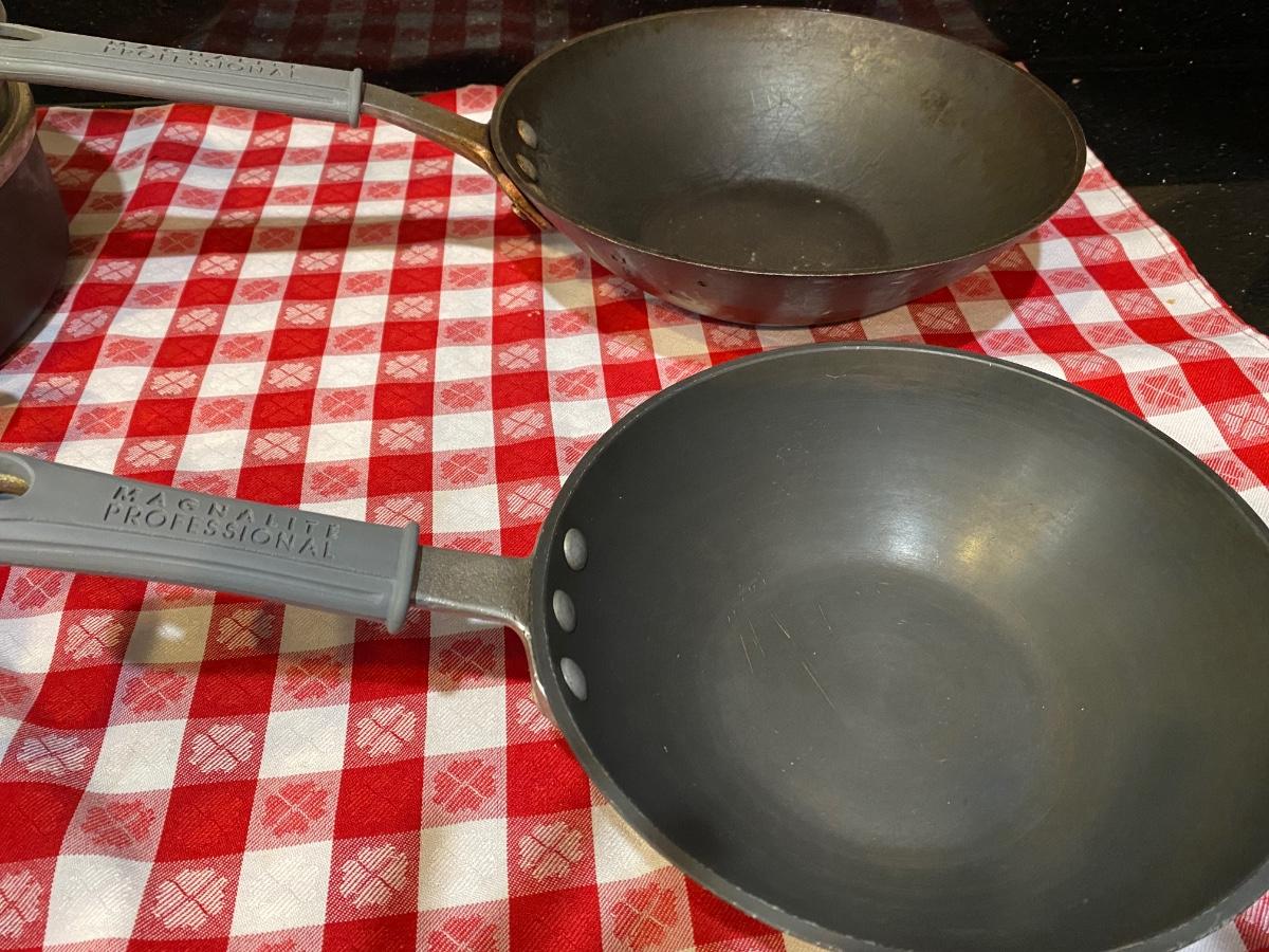 Set of two vintage Magnalite professional woks. 11” and 8-1/2”