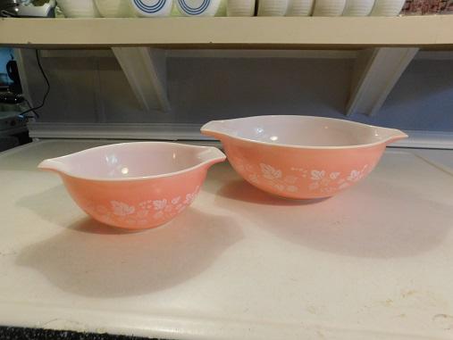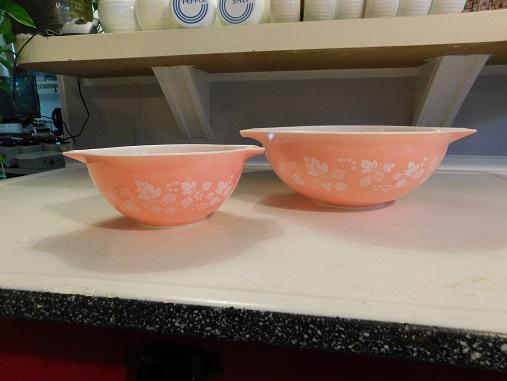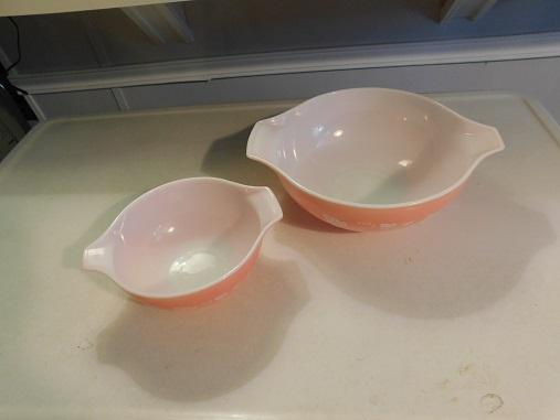 Set of Two Vintage Pink Pyrex Mixing Bowls 11" and 8"