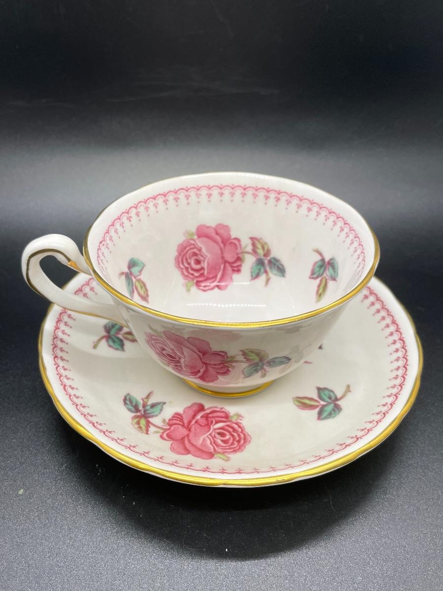 Set of Two Vintage Pink & White Floral Tea Cup and Plate