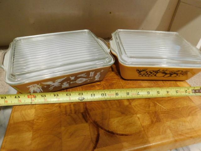 Set of Two Vintage Pyrex Baking Dishes with Lids Various Theme
