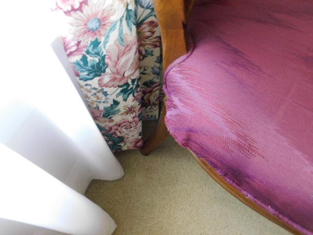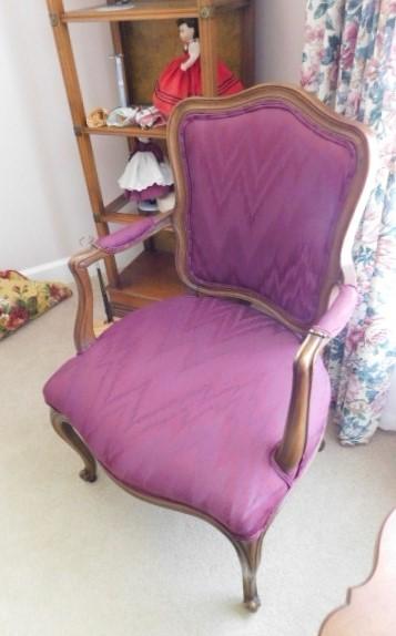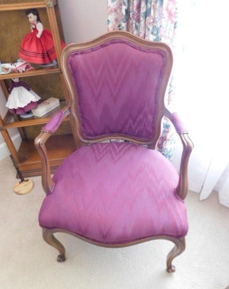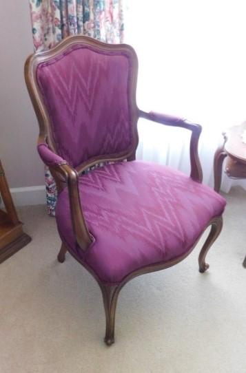 Set of Two Walnut Framed Upholstered Chairs one chair has loose fabric on seat as shown upper floor