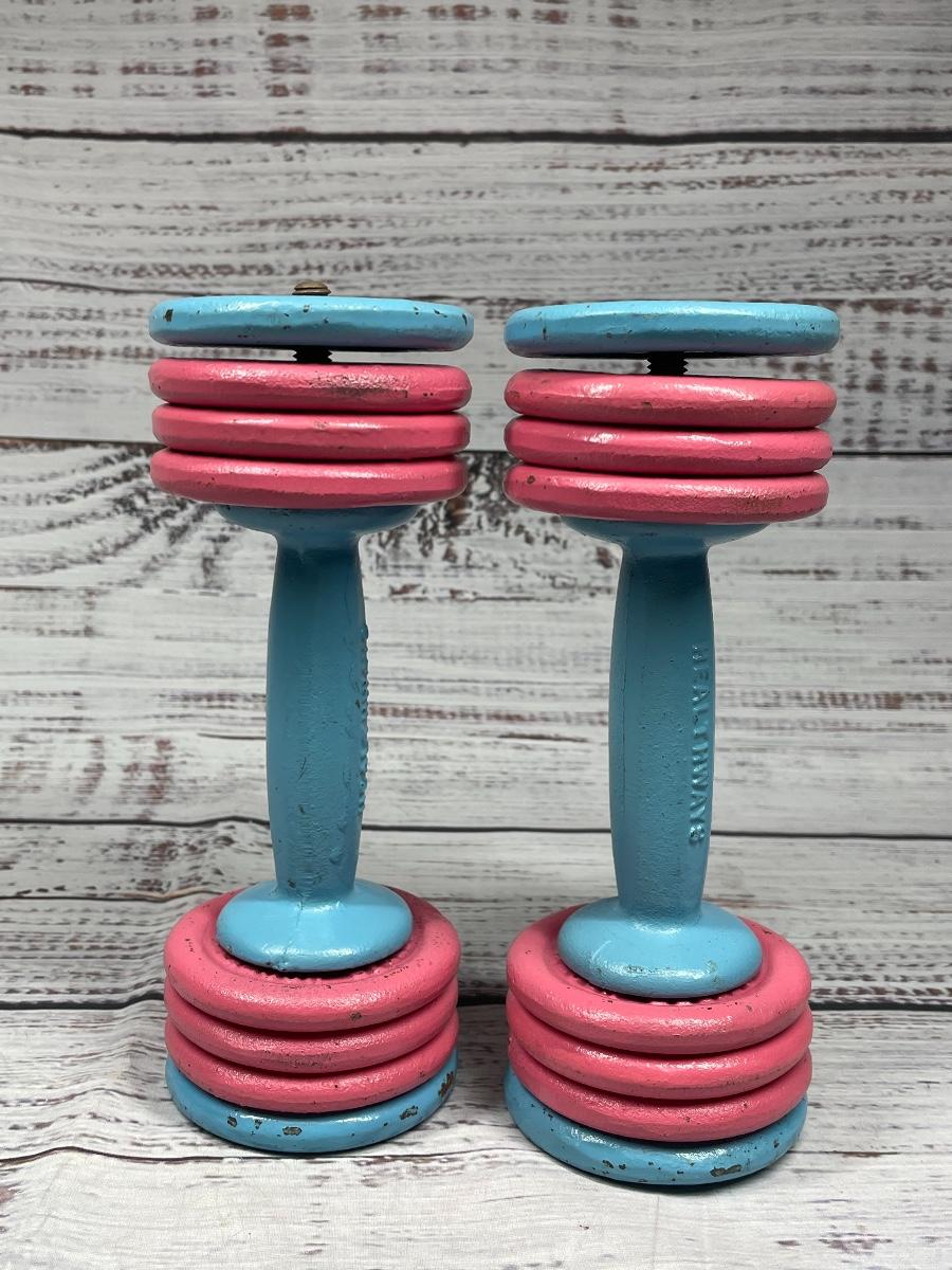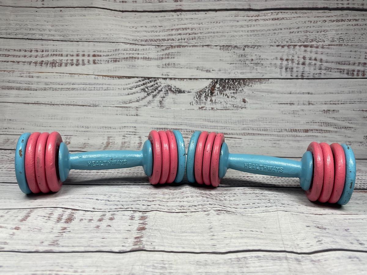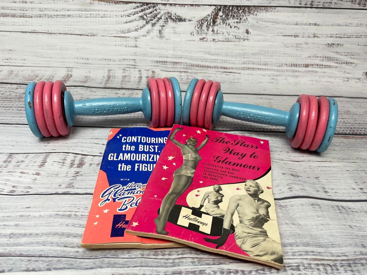 Set of Two Vintage Hollywood Glamour Belles Hand Weights Dumbbell and Healthways Books