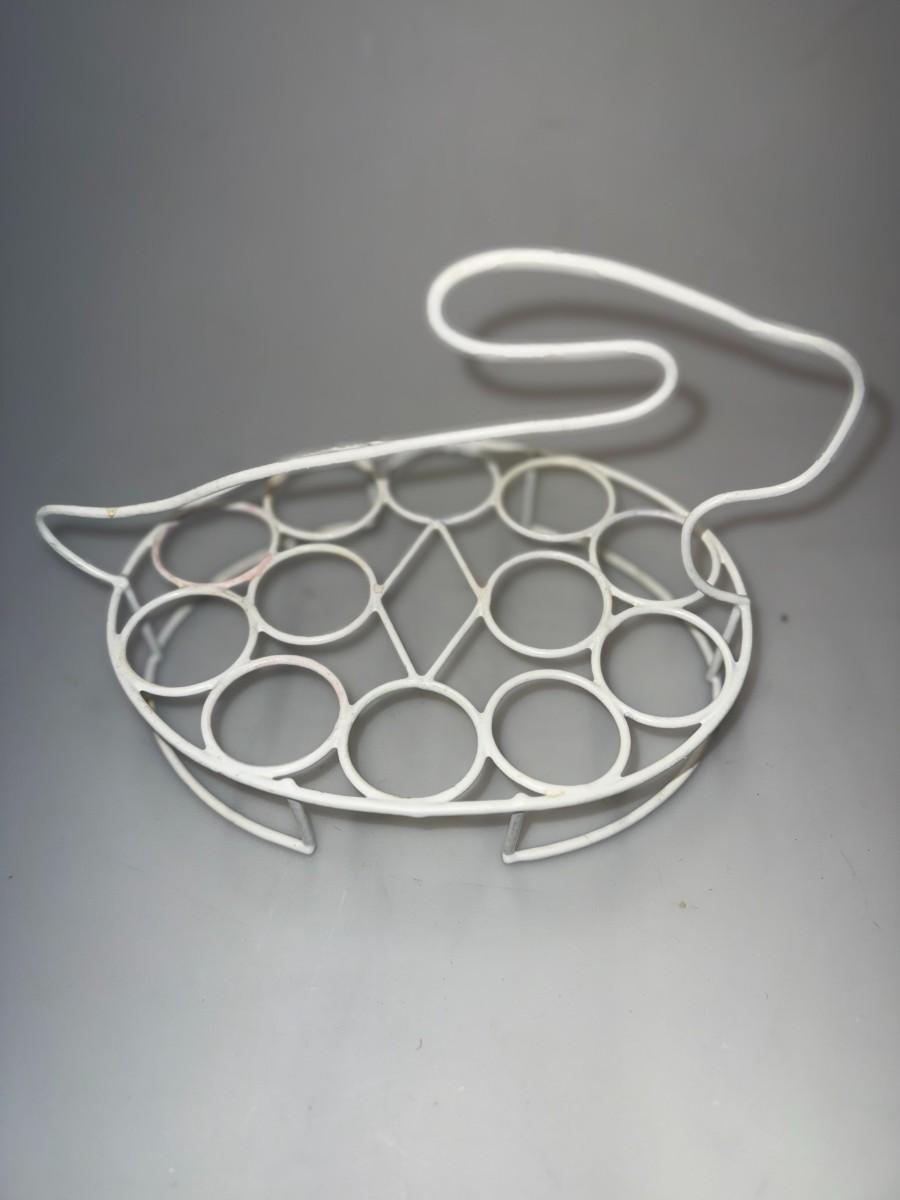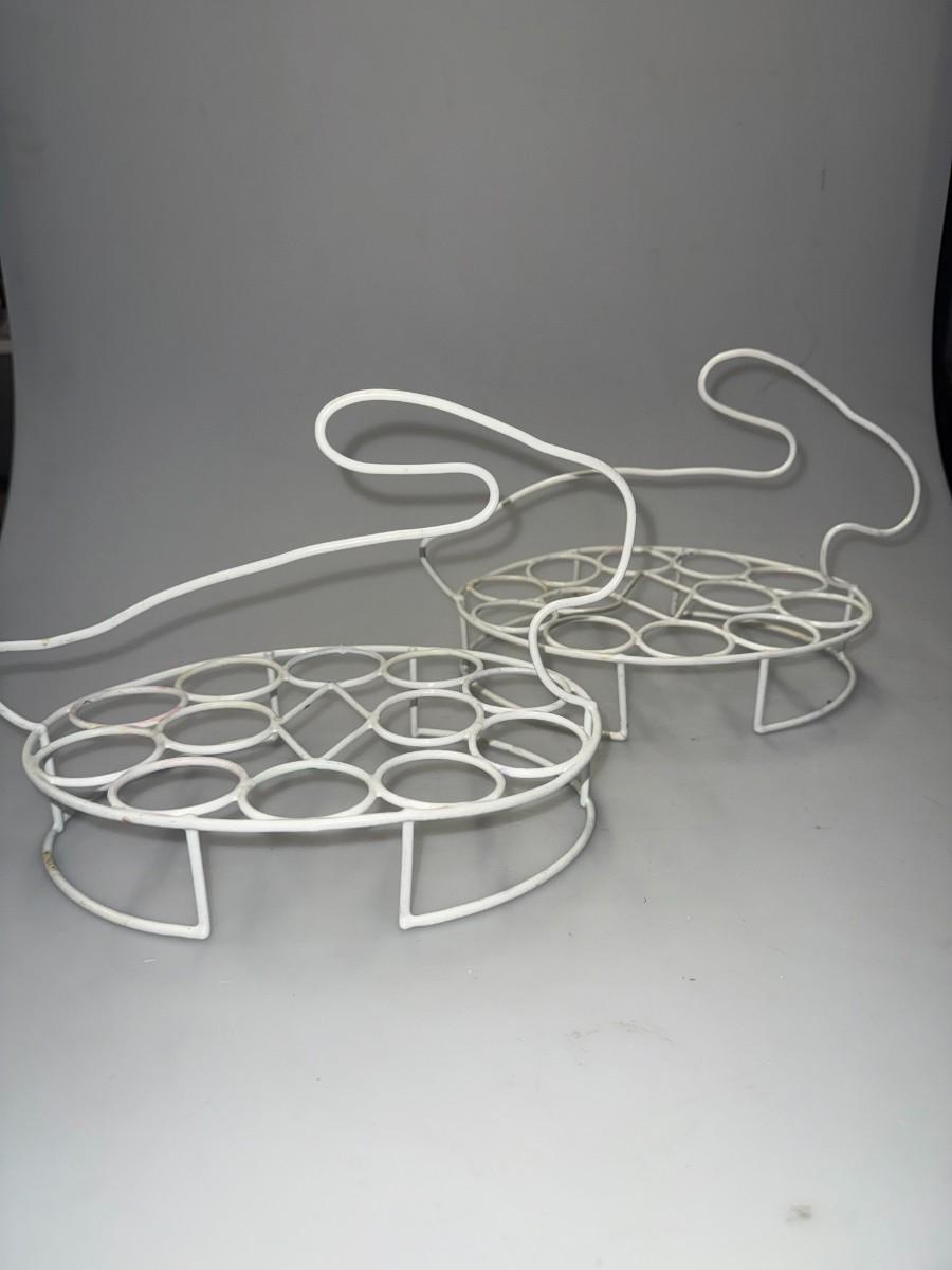 Set of Two White Metal Rabbit Egg Holders