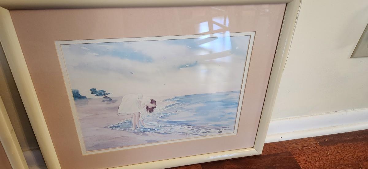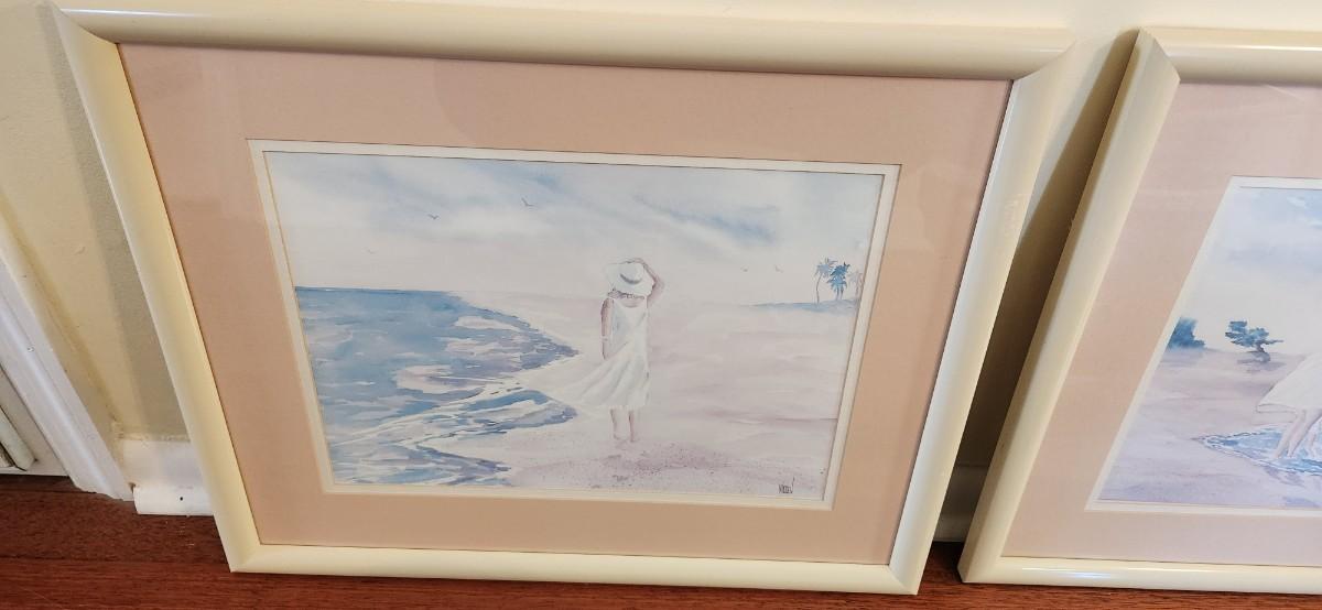 Set Of Two Women On Beach Prints Framed 21.5" X17"
