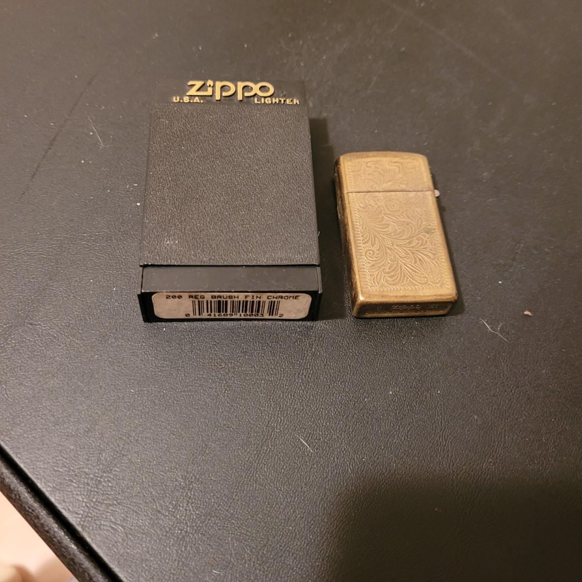 Set of two Zippo lighters, larger silver one in box appears unused or lightly used. No fluid in either so they could not be tested. Shipping available.