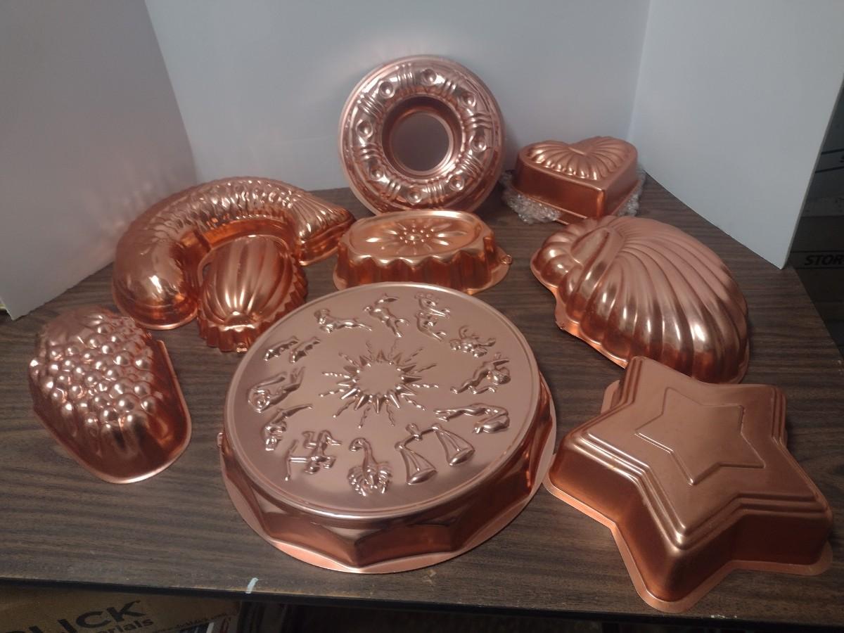 Set of Various Shaped Copper Finish Form or Jello Mold Pans