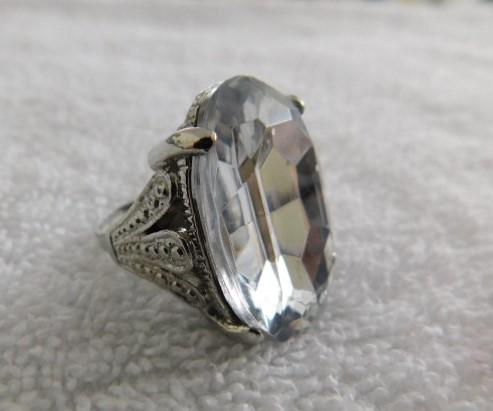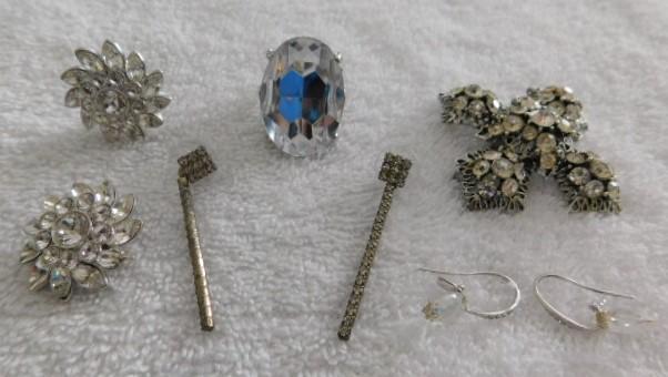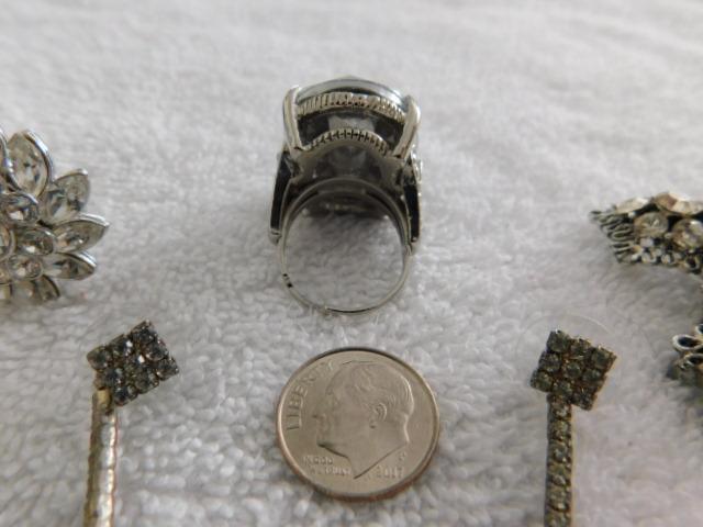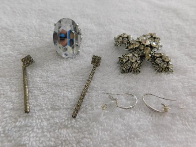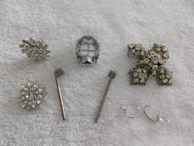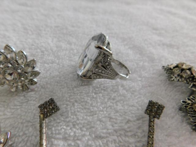 Set of Victorian Costume Jewelry Brooch, Glass Stone Ring, Earrings