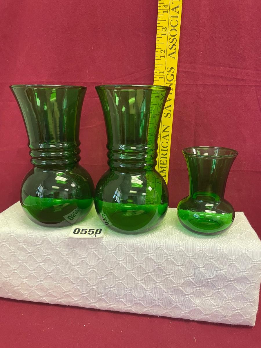 Set of vintage anchor hocking glass forest w/ 3 rings-6 1/4”T