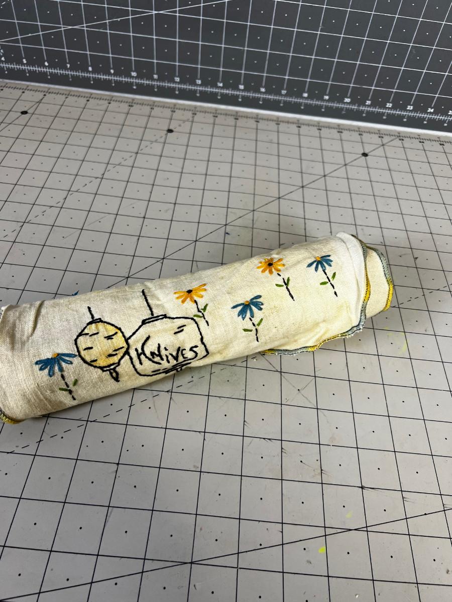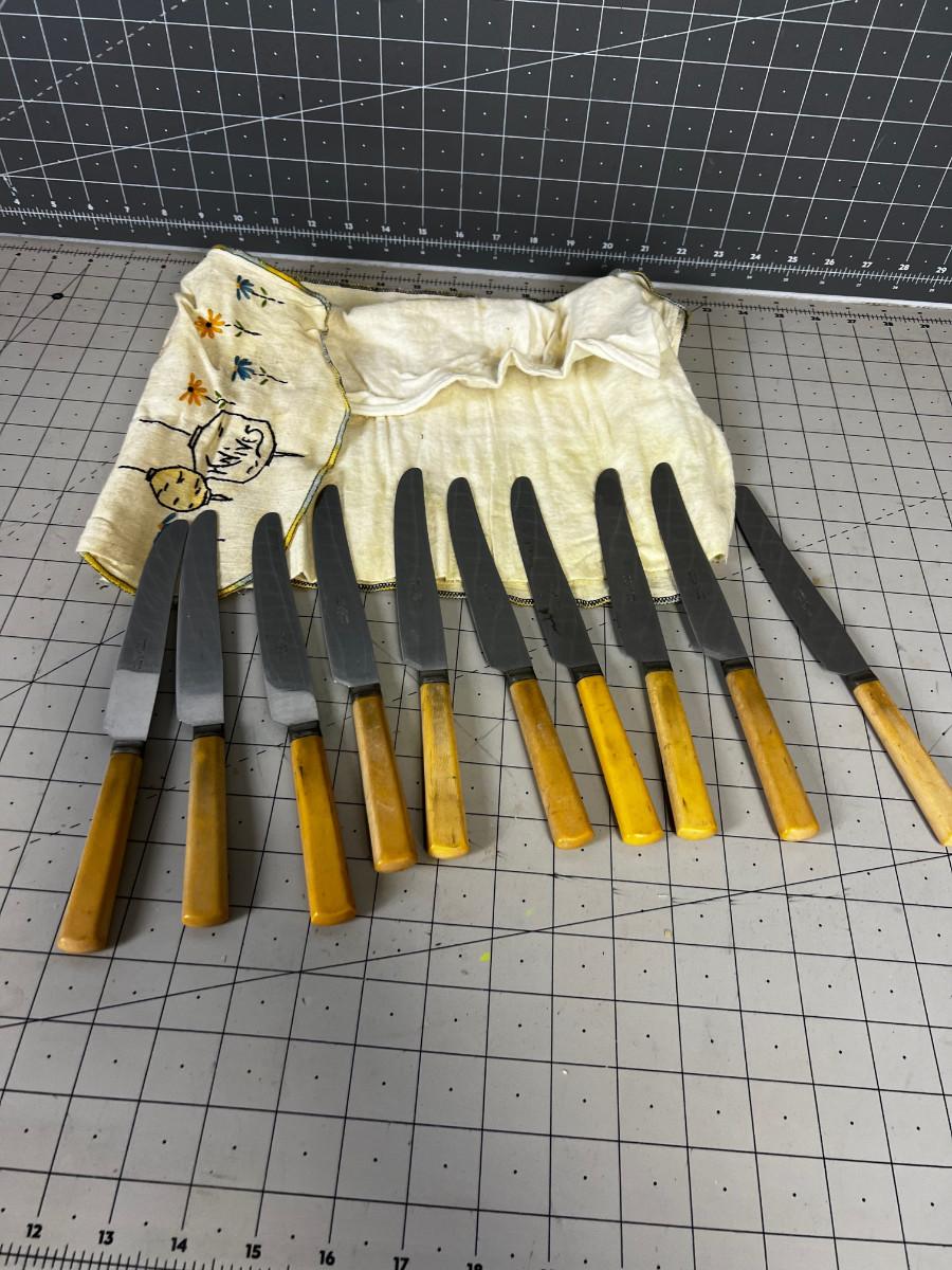 Has a Embroidered Knife Cozy. 10 Knives