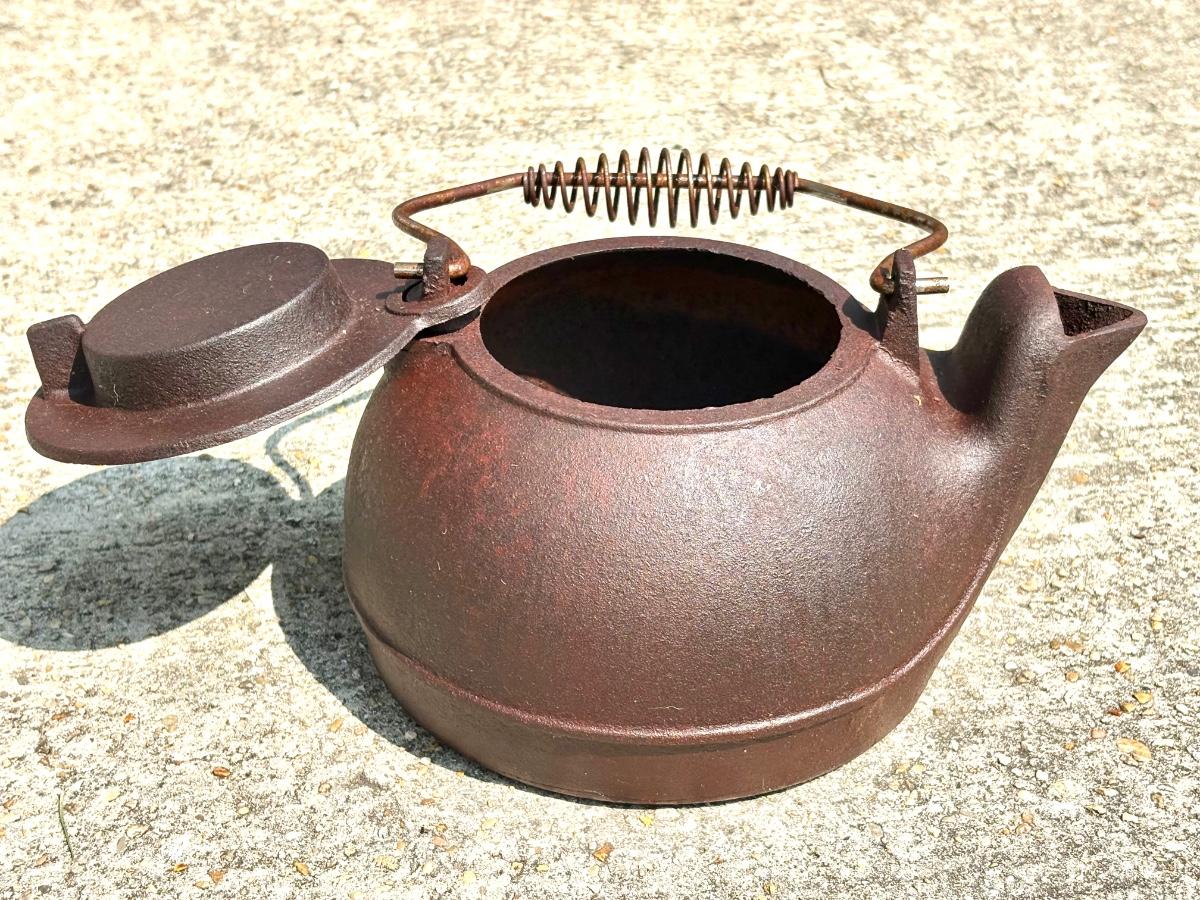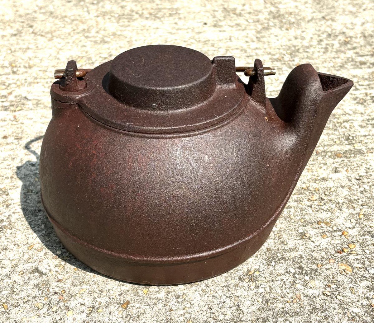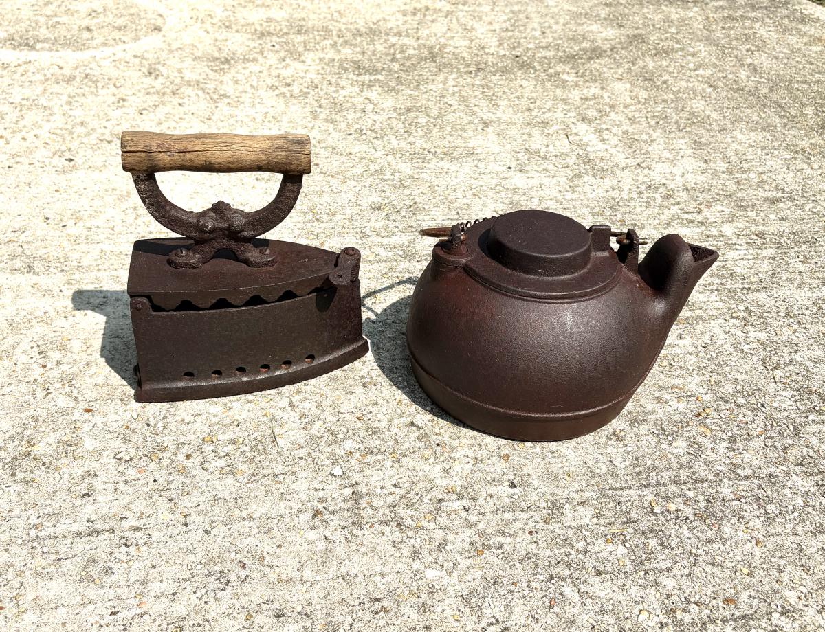Vintage Cast Iron Clothing Iron and Tea Kettle