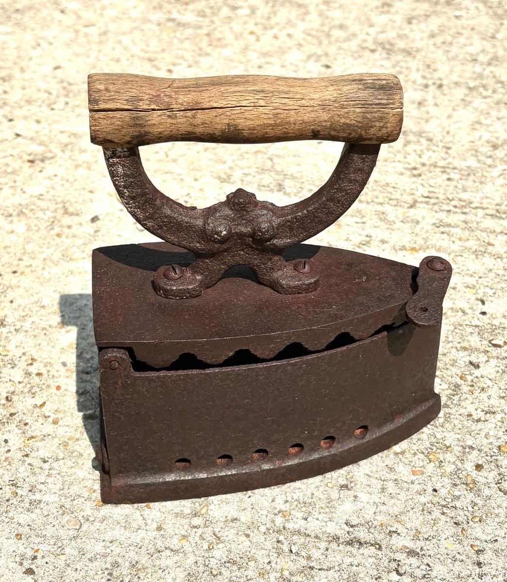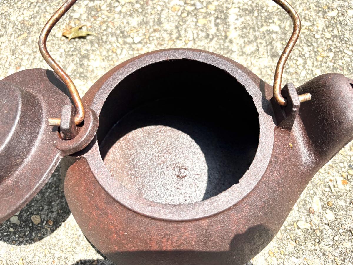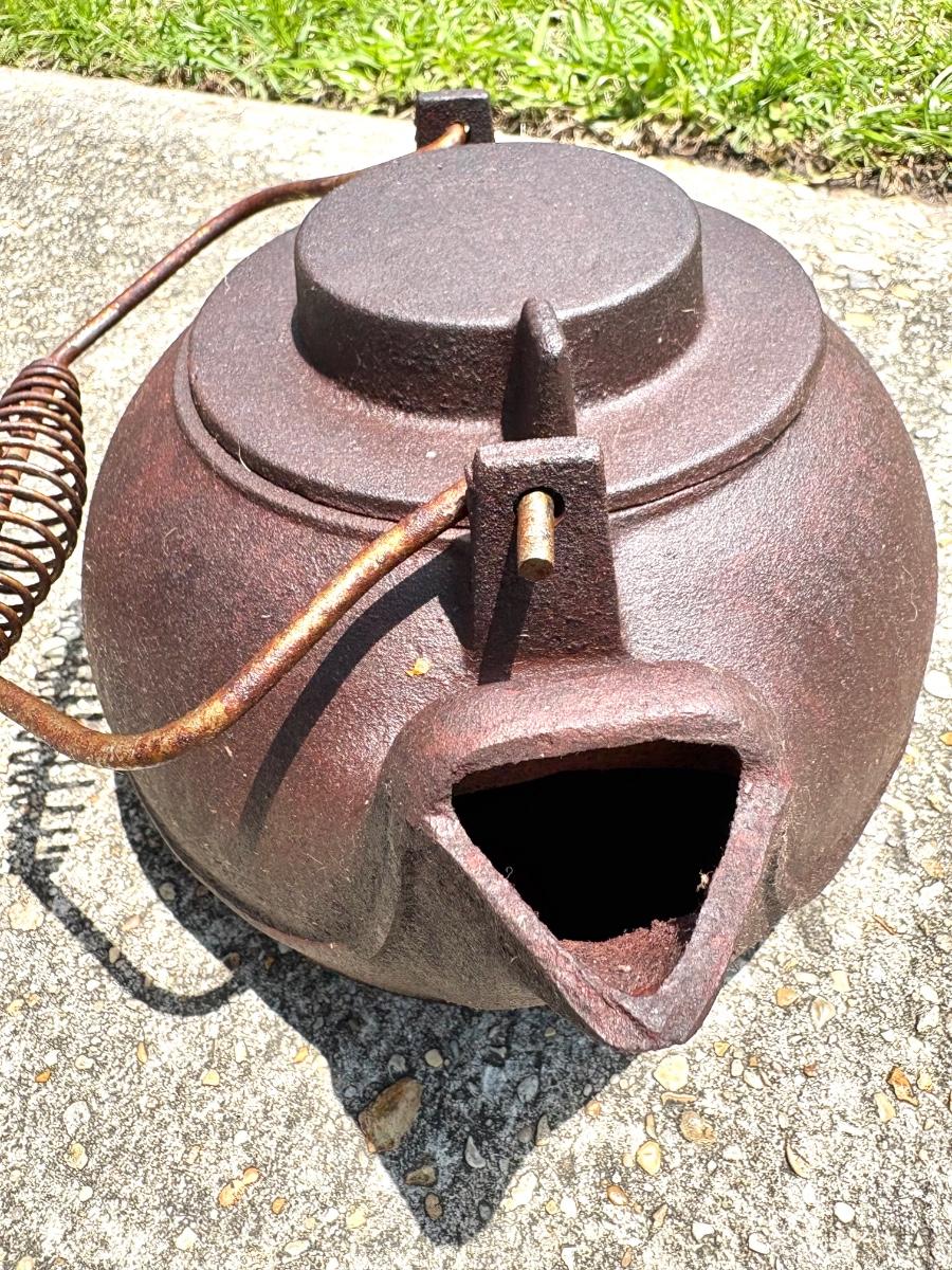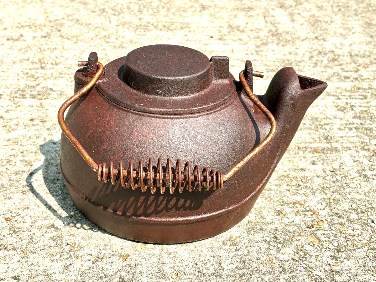Vintage Cast Iron Clothing Iron and Tea Kettle