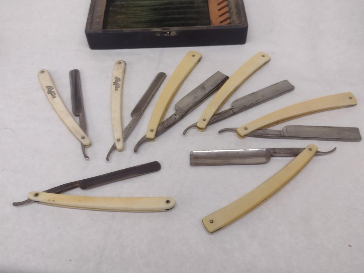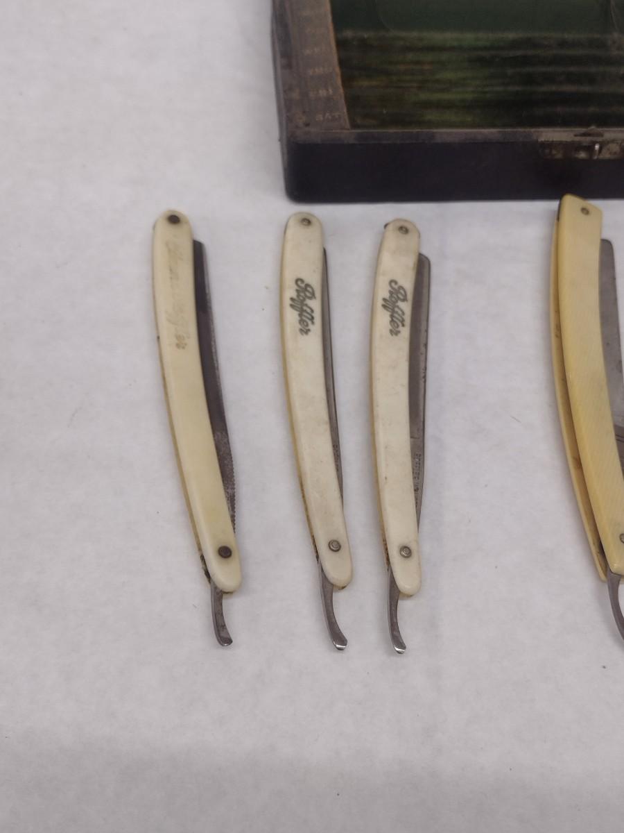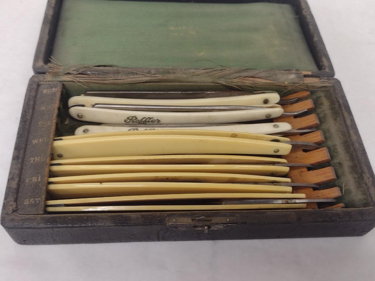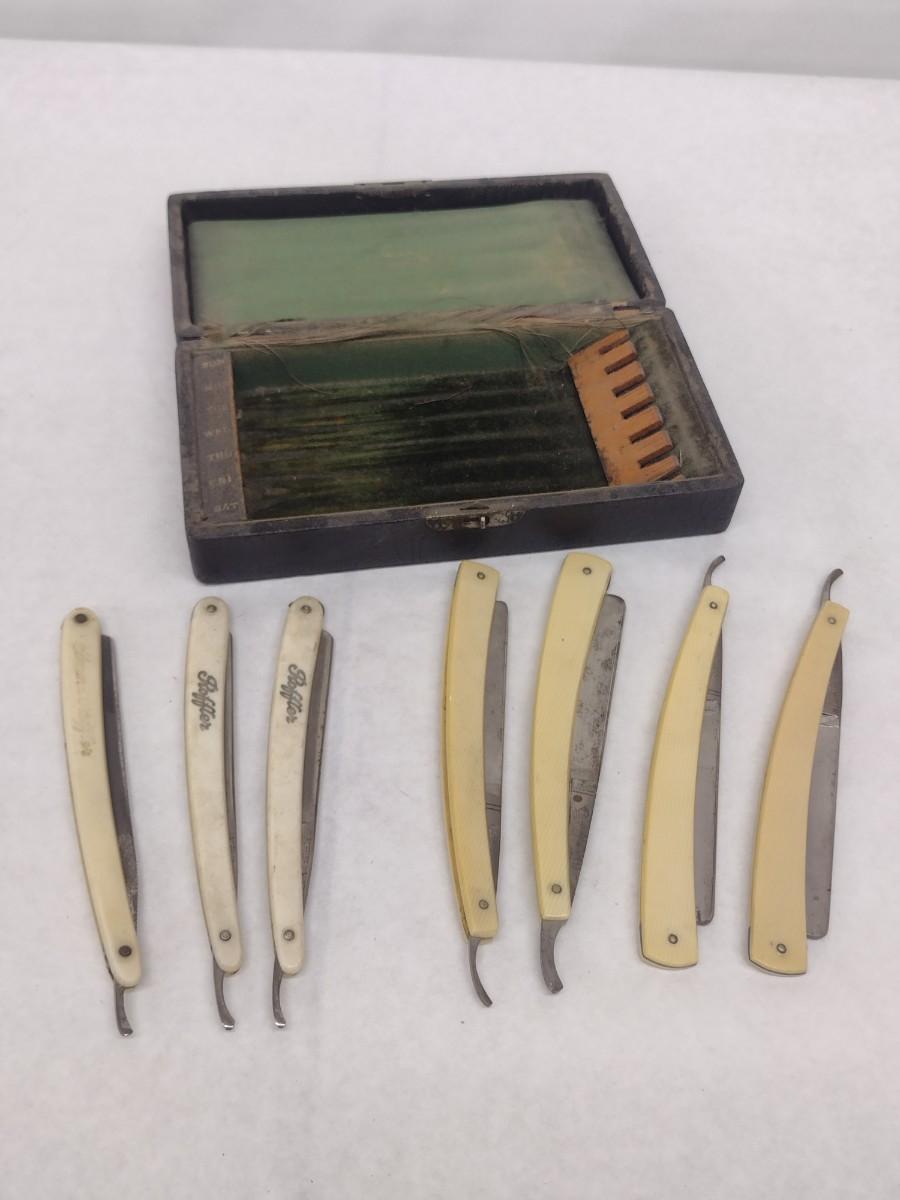 Set of Vintage Edmond Roffler and Genco Straight Blade Shavers with Celluloid Handles and Daily Shave Box (#2)