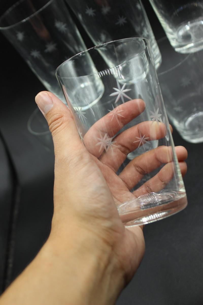 Set of 8 Vintage Federal Glass Mid Century Modern Etched Cut Stars Drinking Glasses