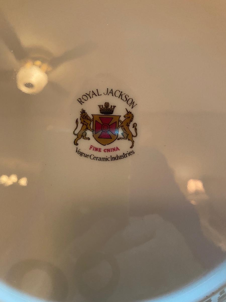 Set of vintage fine china dinnerware, 8 place settings plus 6 serving pieces! Very good condition. Royal Jackson fine china, Vogue Ceramic Industries. Tray not included.