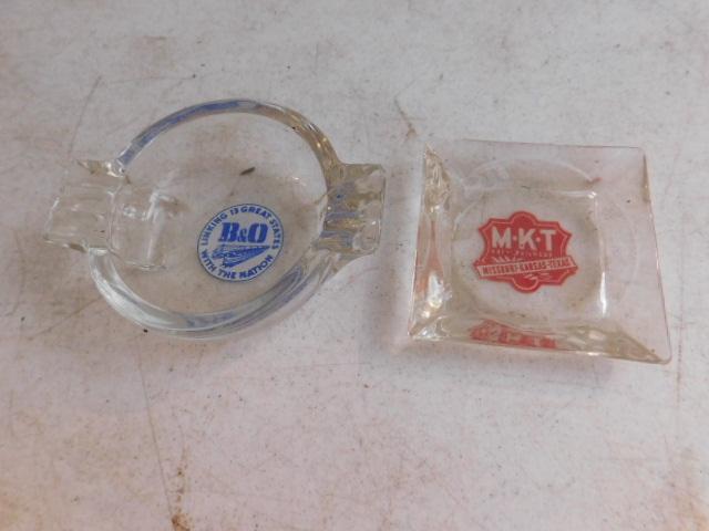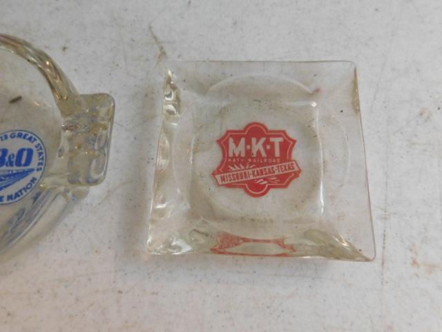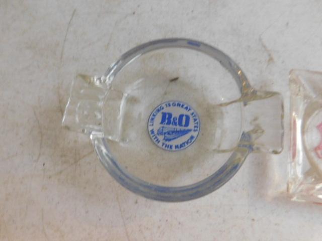 Set of Vintage Glass Rail Road Advertising Ashtrays