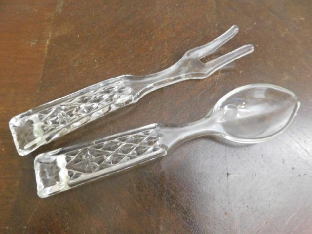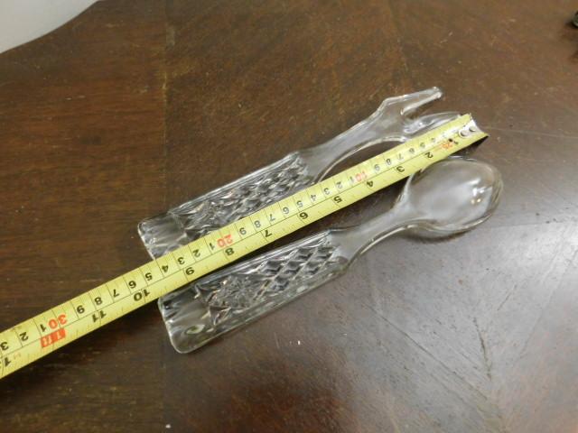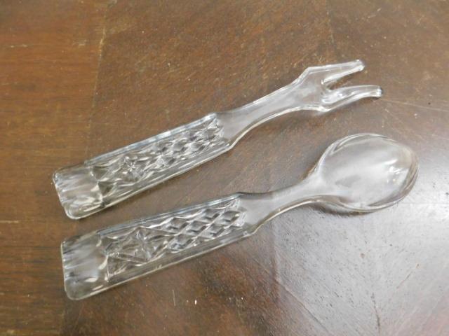 Set of Vintage Glass Salad Serving Fork and Spoon