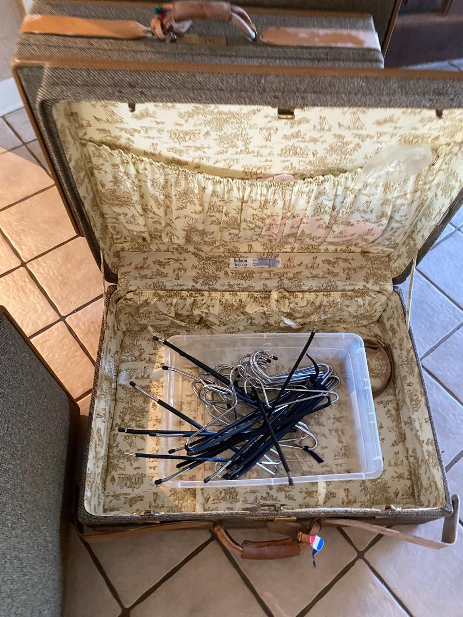 There are four suitcases. The small one appears to be locked and has not been opened. There is mildew on some of these and will need to be cleaned. As is.