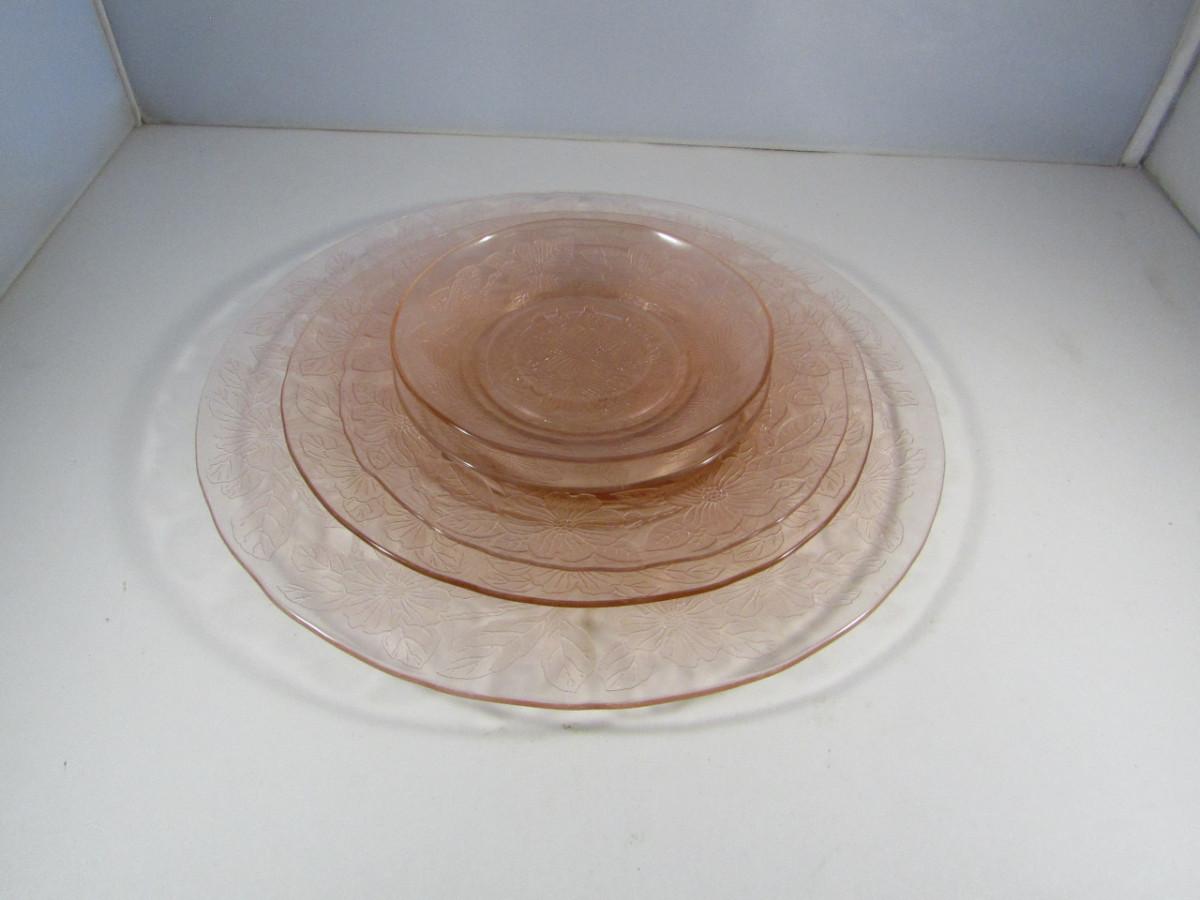 Set of Vintage Macbeth-Evans Dogwood Pattern Pink Depression Glass