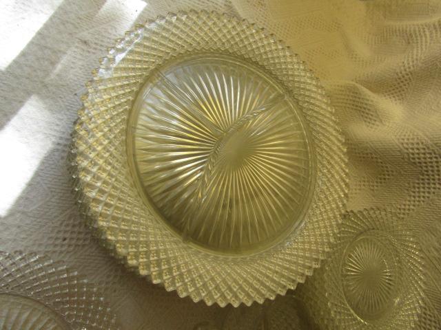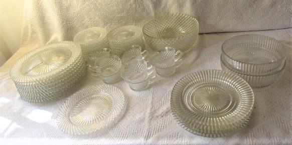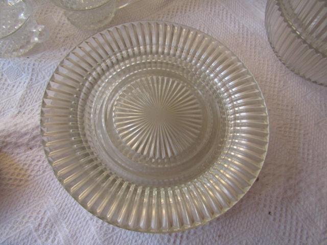 Set of Vintage Patterned Glass Dessert and Party Plates and Punch Cups