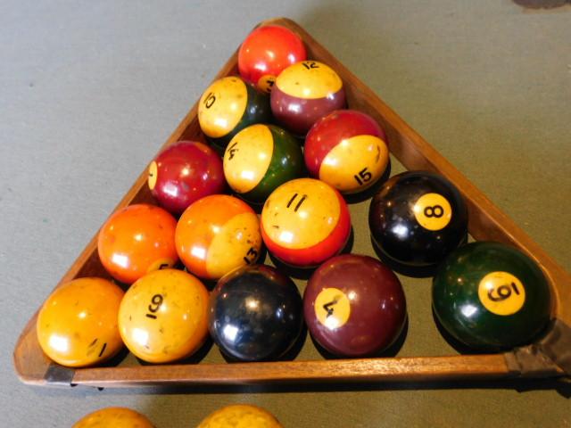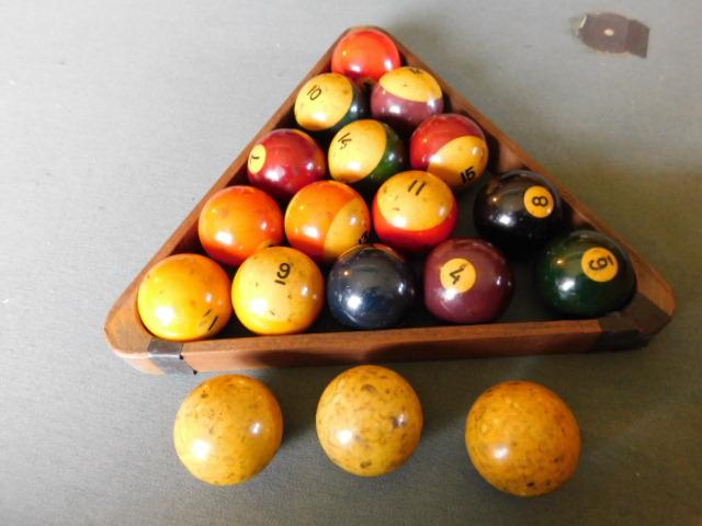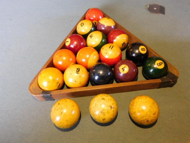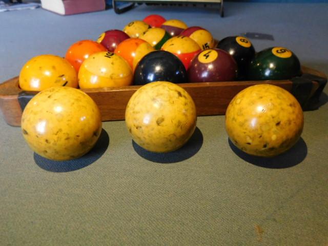 Set of Vintage Pool Balls with Speckled Cue Balls