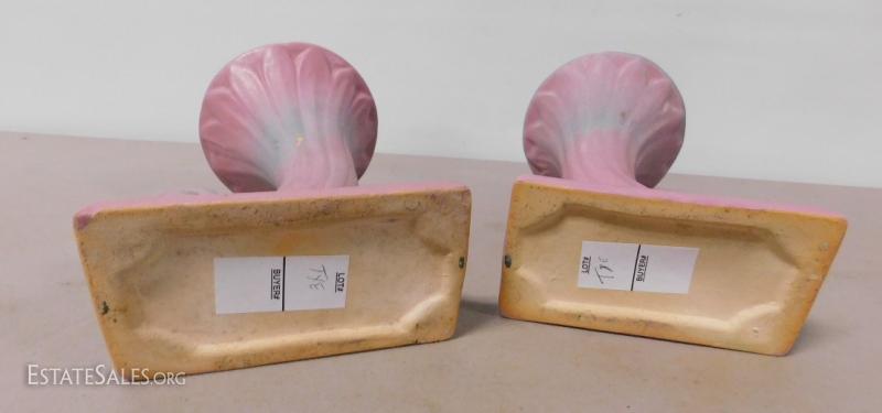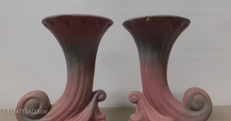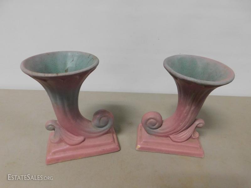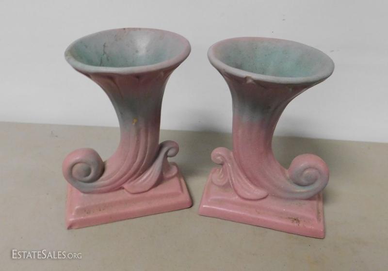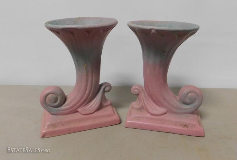 Set of Vintage Pottery Vases unmarked but has the Hull or McCoy appearance. One has small chip on outside lip.