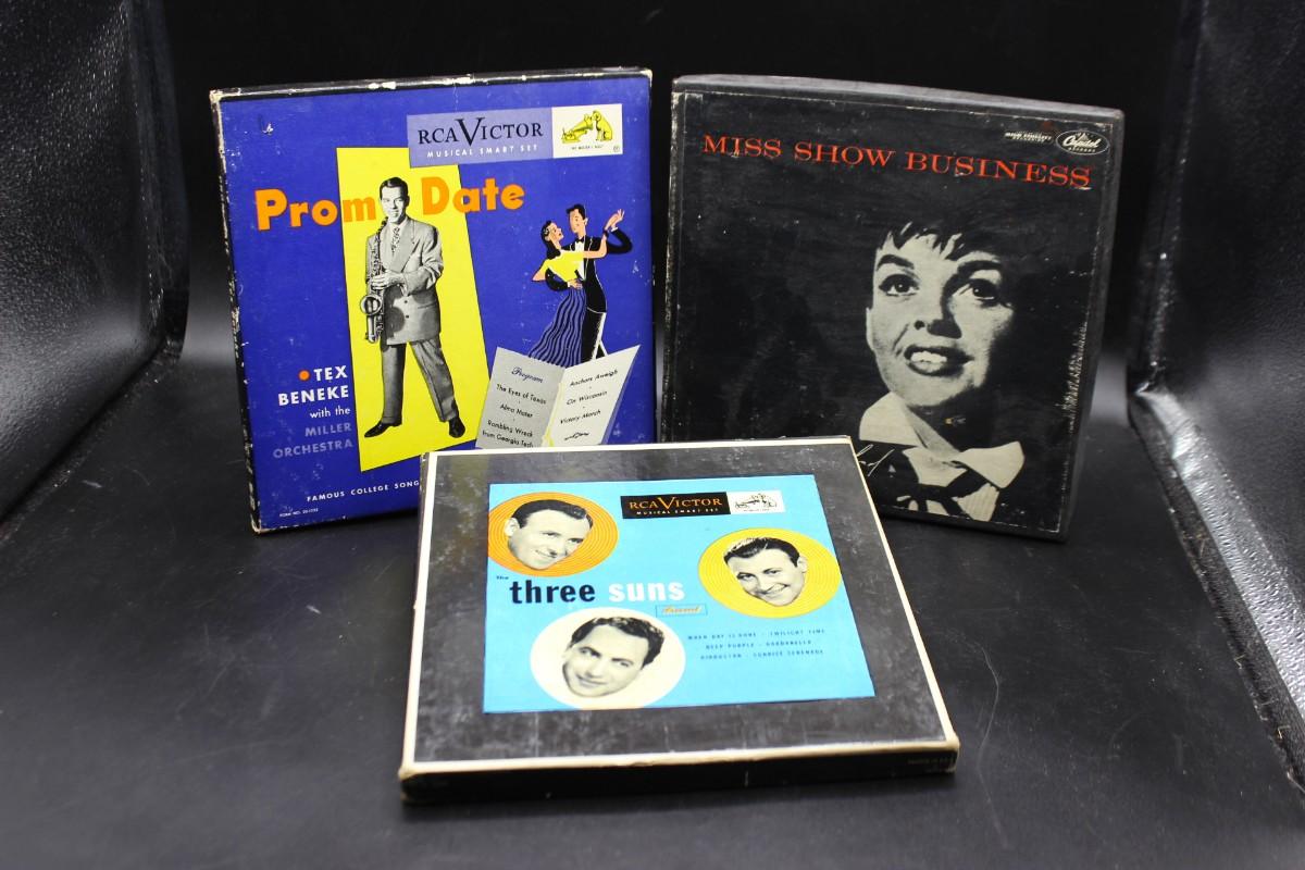 Set of Vintage RCA Victor & Capitol Records Judy Garland The Three Suns Tex Beneke Vinyl 45 RPM Box Sets