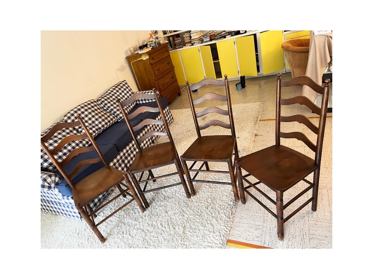 Set of Vintage Style Ladder Back Wooden Chairs