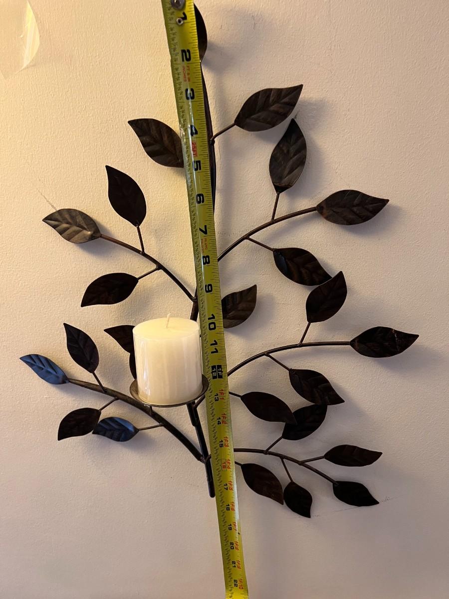 Set of Wall Hanging Metal Leaf Branch Candle Holders