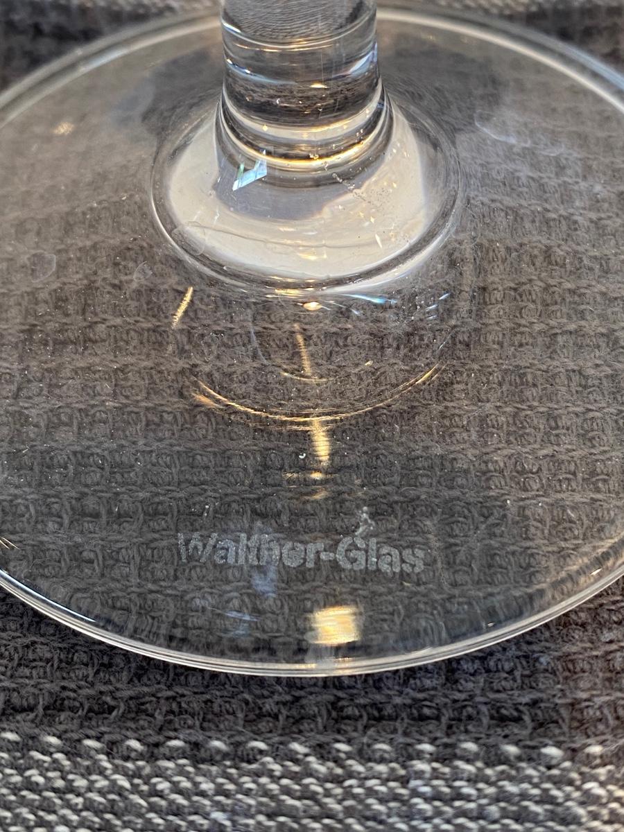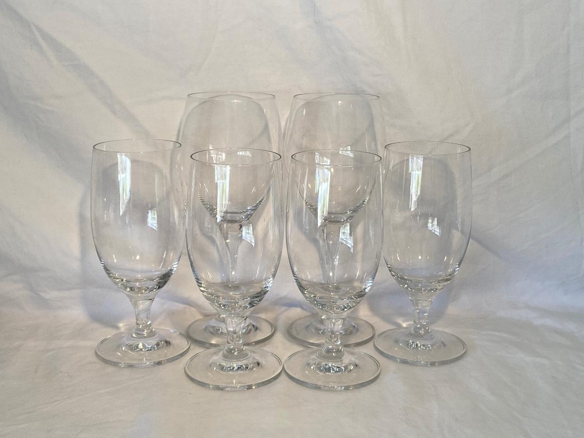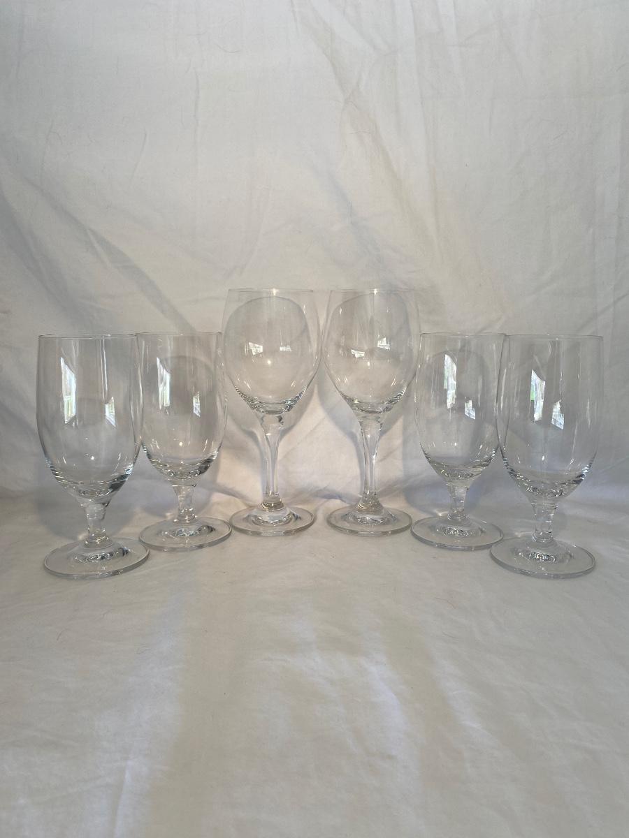 Set of Walther-Glas Drinkware including two wine glasses and four water goblets. Preowned, like new, and sold as is