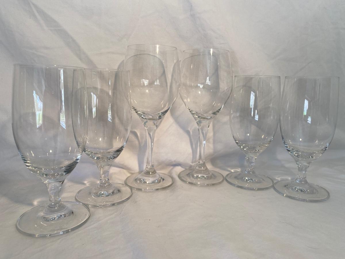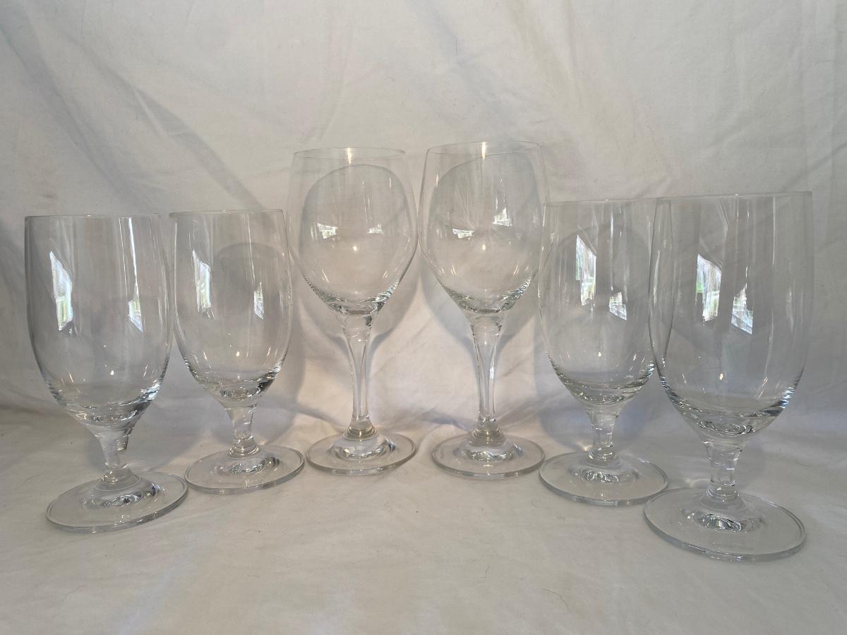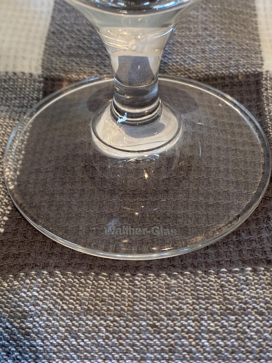 Set of Walther-Glas Drinkware including two wine glasses and four water goblets. Preowned, like new, and sold as is