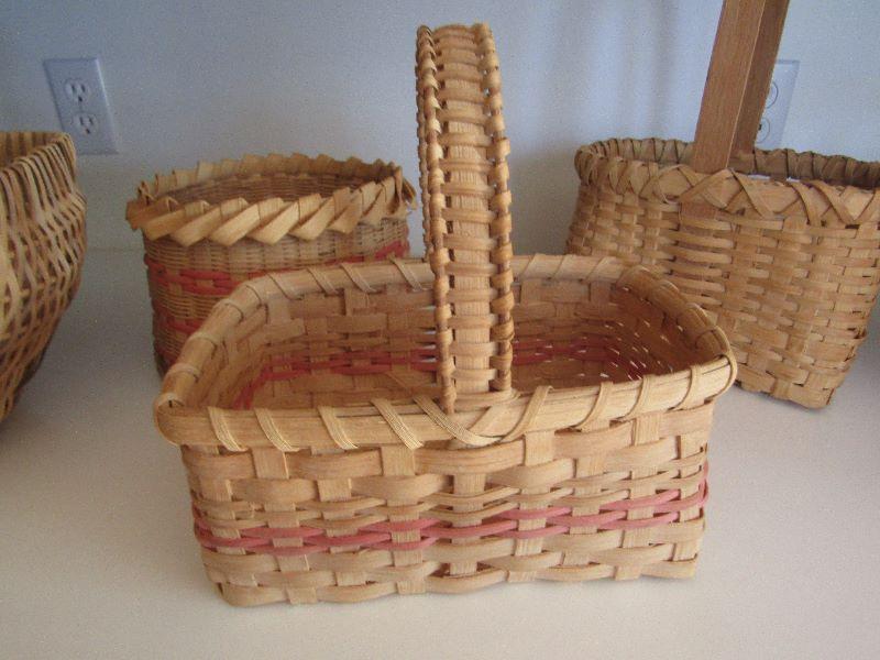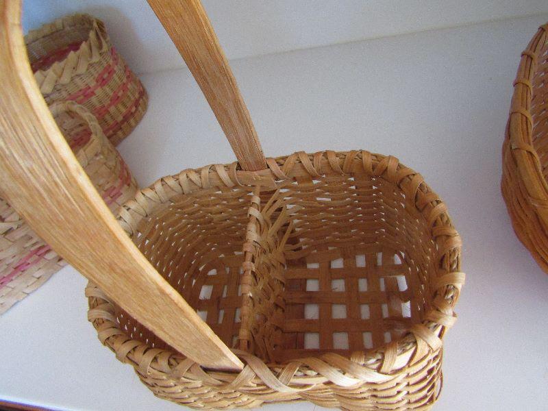 Set of 5 Hand Made Weave Baskets Various Sizes and Designs
