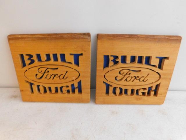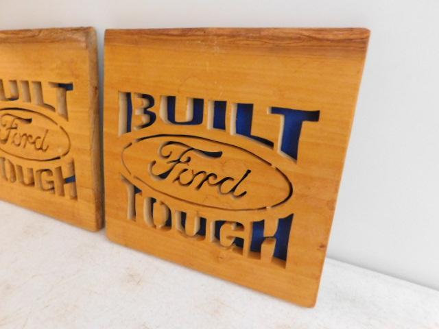 Set of Wood Slab Laser Cut Ford Tough Advertising Signs 11"