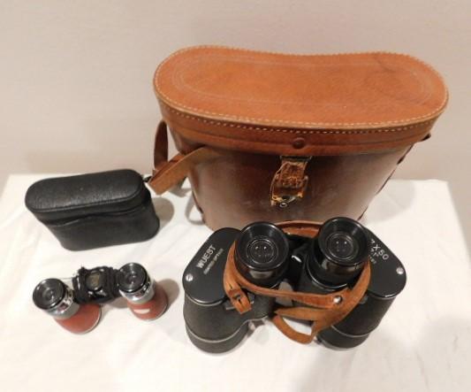 Set of Wuest Binoculars 7x50mm and Lark 4x30mm Field Glasses with Cases
