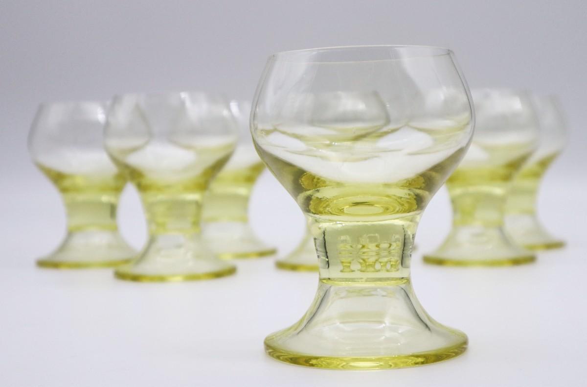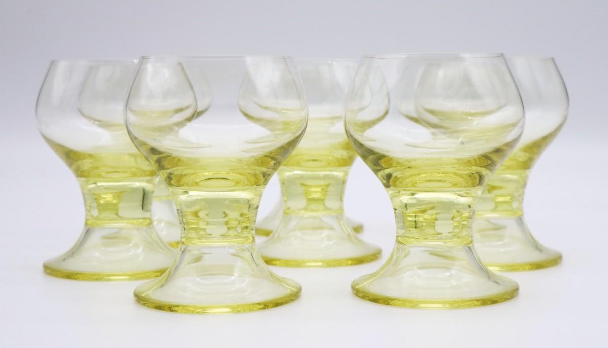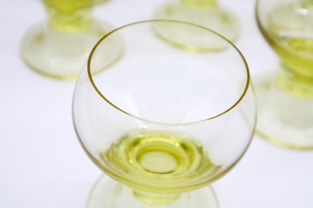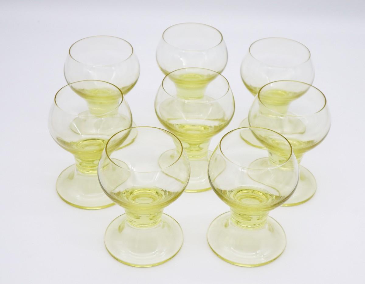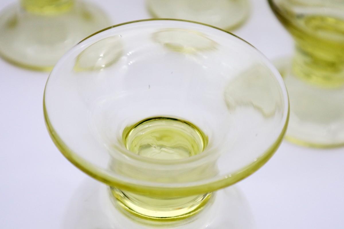 Set of 8 Yellow Handblown Glass Goblets, they measure approximately 5-1/4" tall, opening 3-1/4" and the base 3-3/4" .