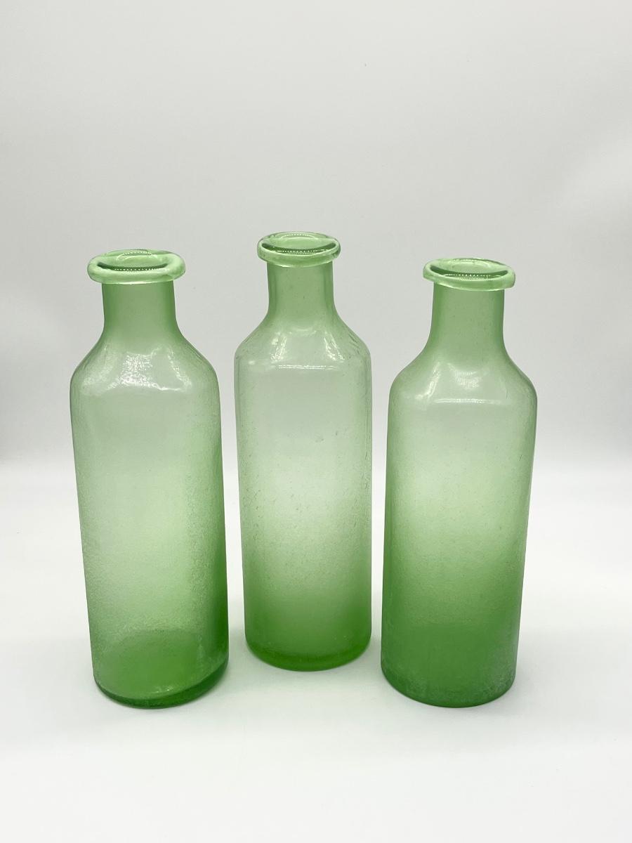 Set Three (3) ~ Green Milk Glass Bottles