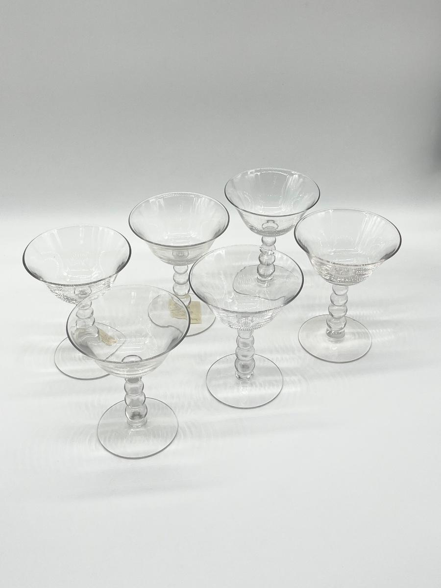 6 Goblets measure 7 3/8” H ~ 6 champagne glasses measure 5 1/4” H