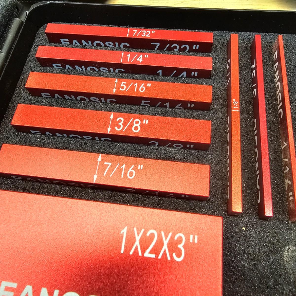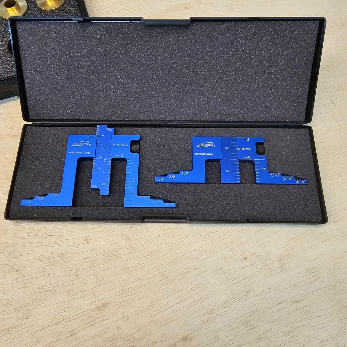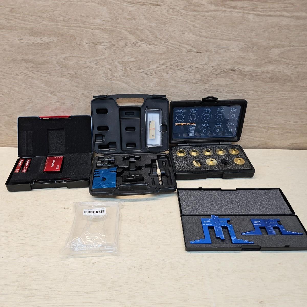 Aluminum precision size set up blocks for precise job measuring. Also a set to gauge router work and a bushing set. A group of clear plastic nesting shapes for inlay. See photos for details. Shipping available.