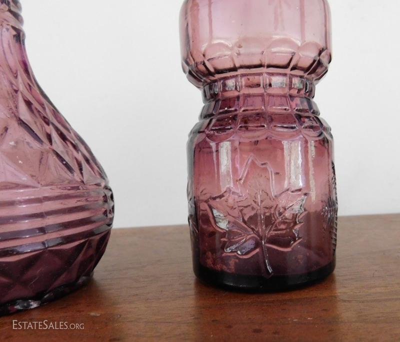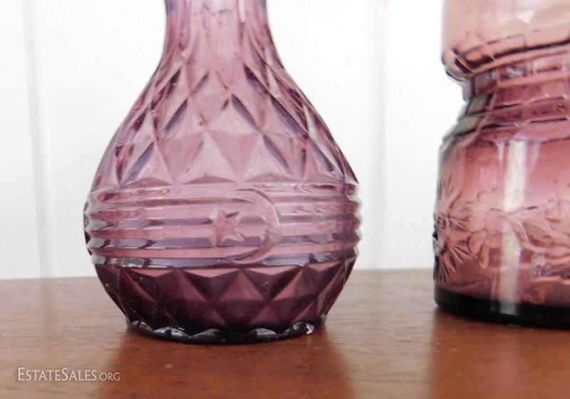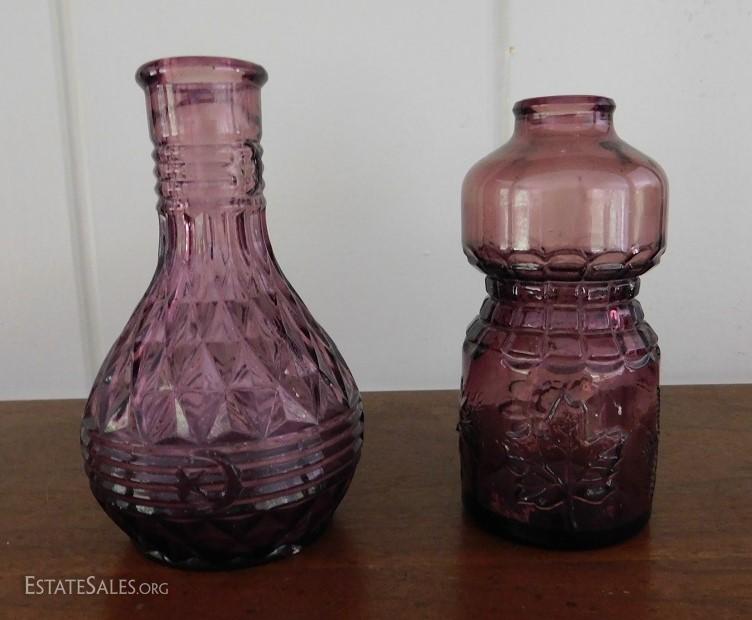 Vintage pressed glass bottles on a Briarwood and the other a Wheaton Co. In good shape. Shipping Available.